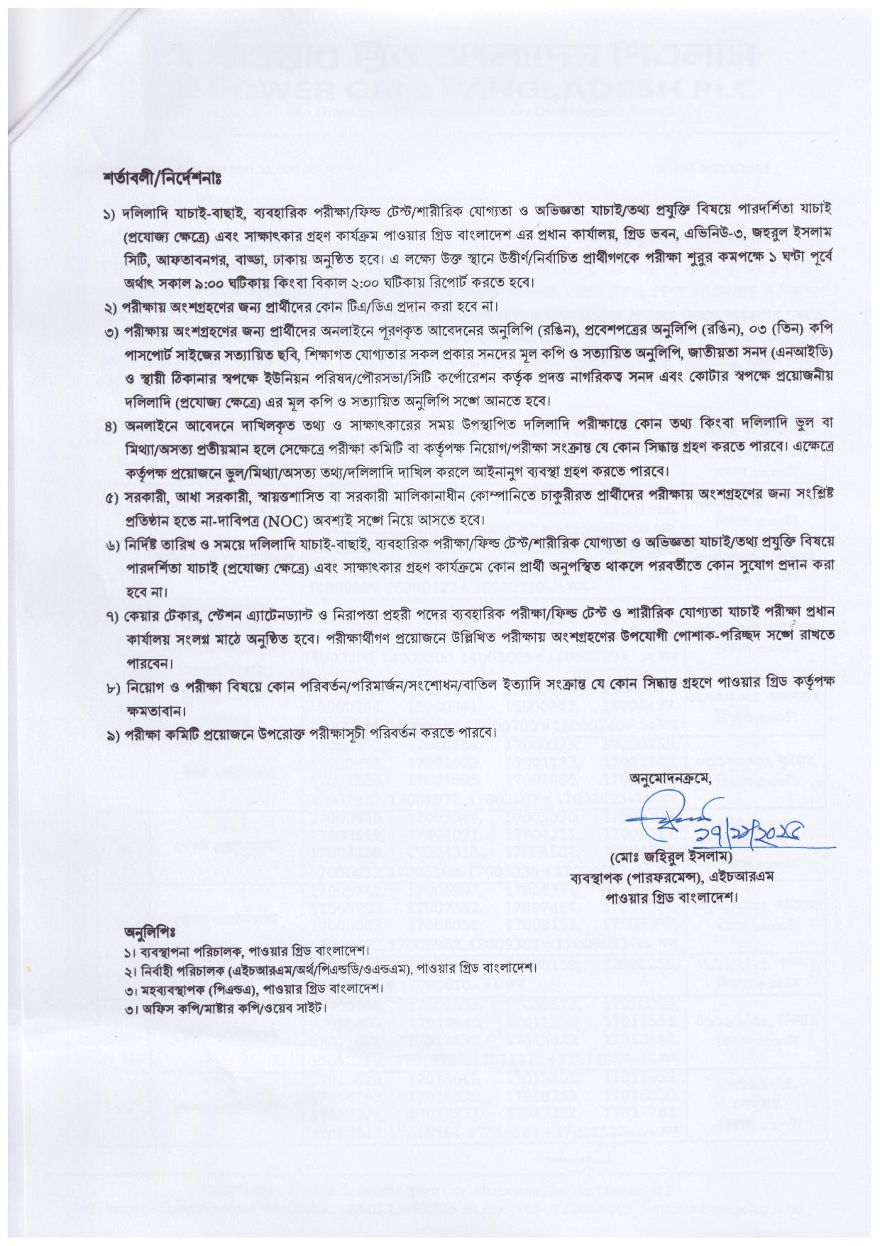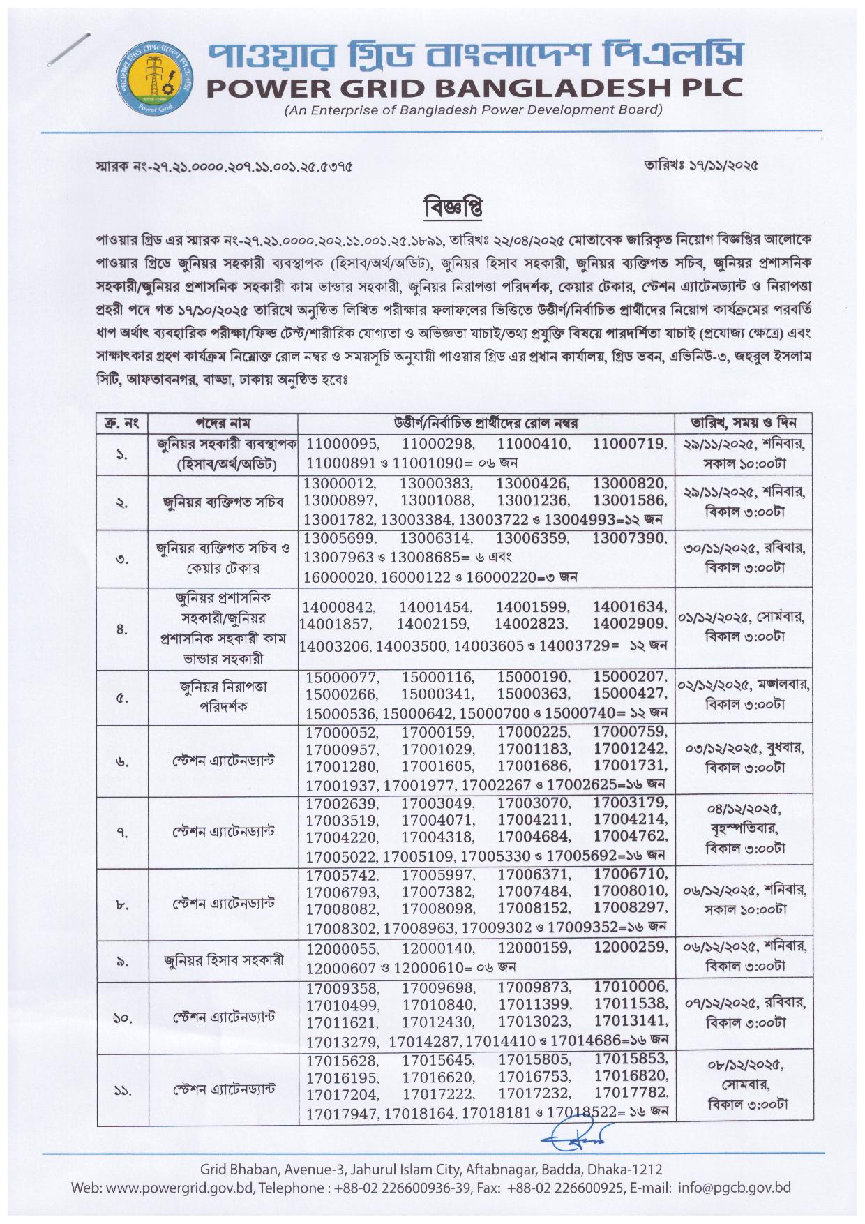 পাওয়ার গ্রিড বাংলাদেশ পিএলসি- এর লিখিত পরীক্ষার ফলাফল এবং ব্যবহারিক পরীক্ষার সময়সূচী প্রকাশ