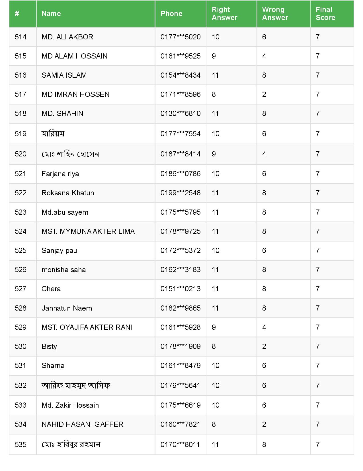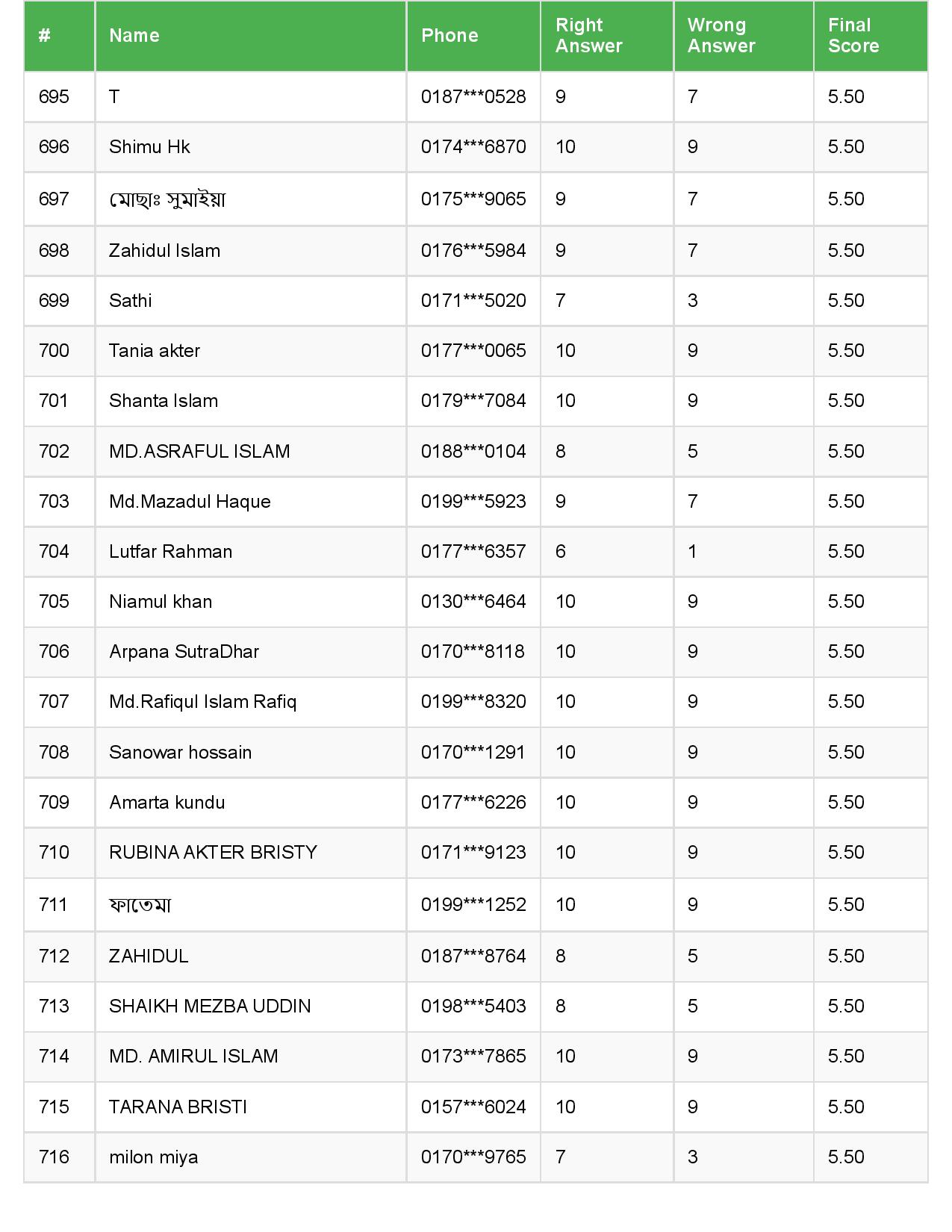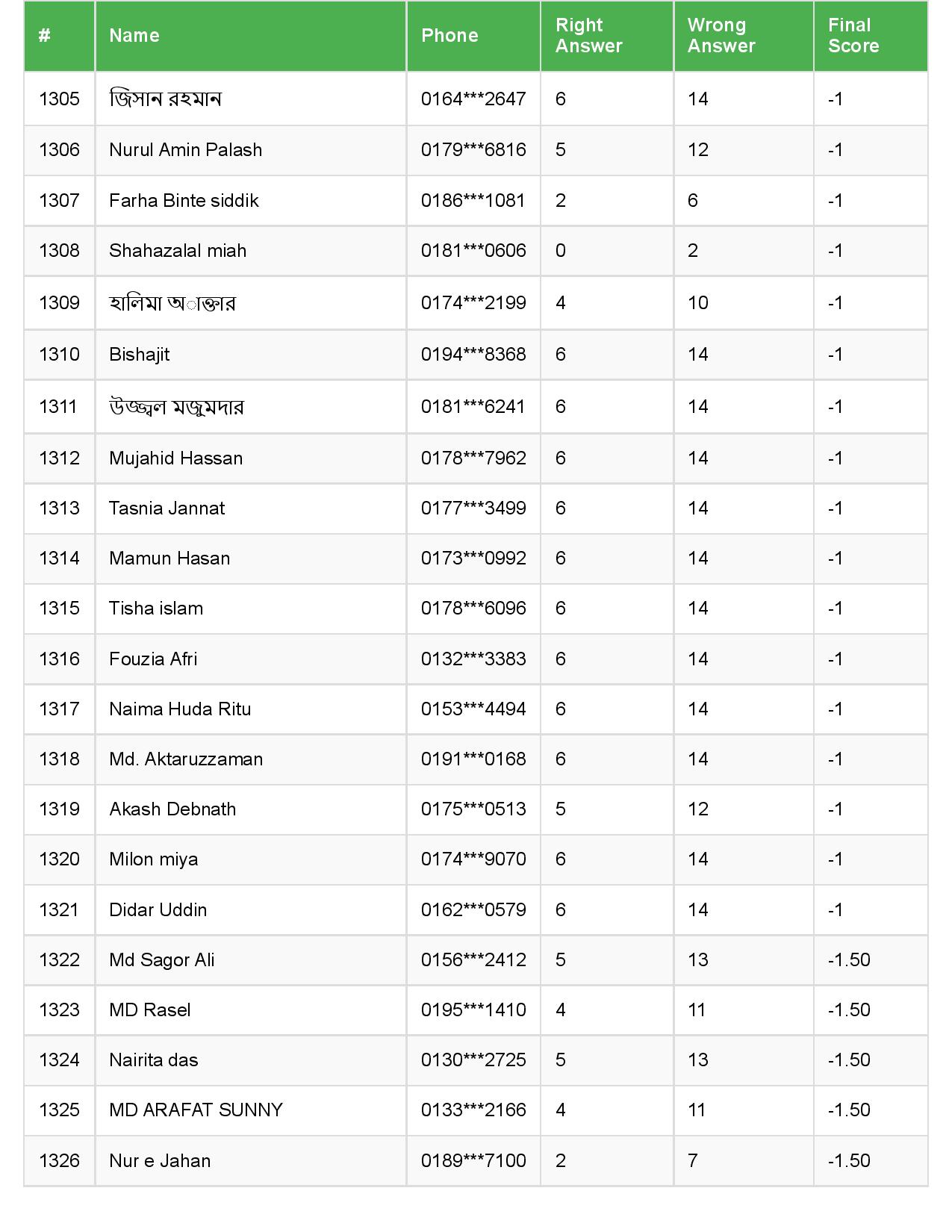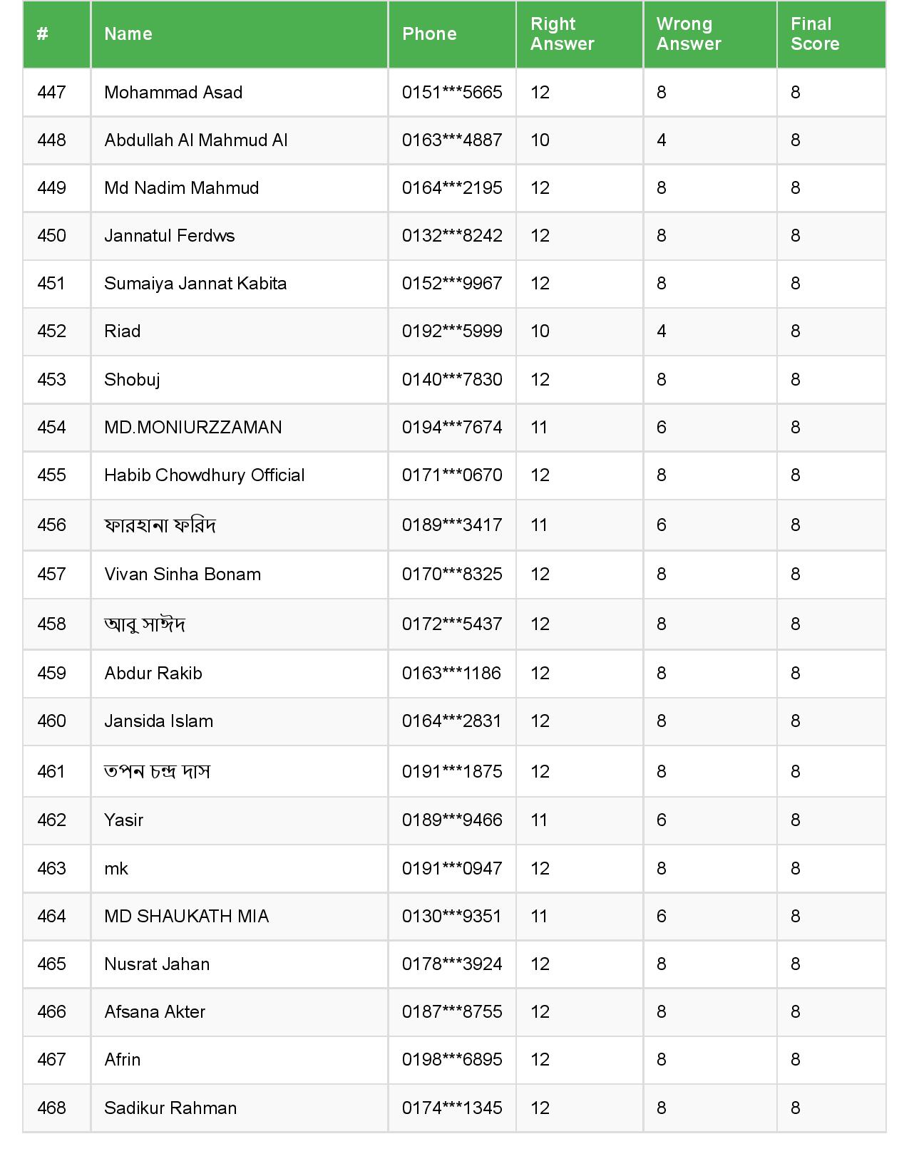 | 10 | Md.Asadullah | 0130***4331 | 18 | 2 | 17 |