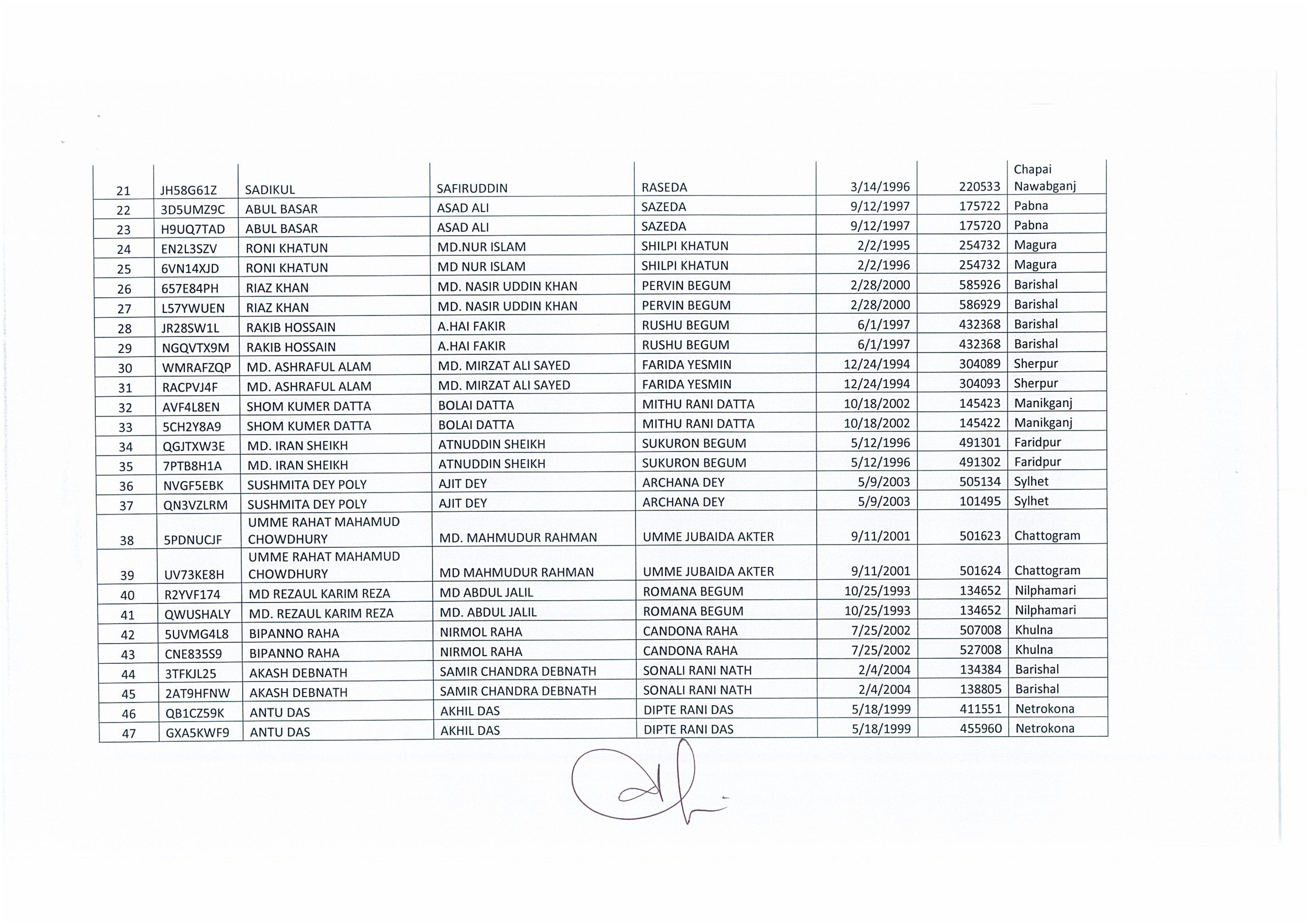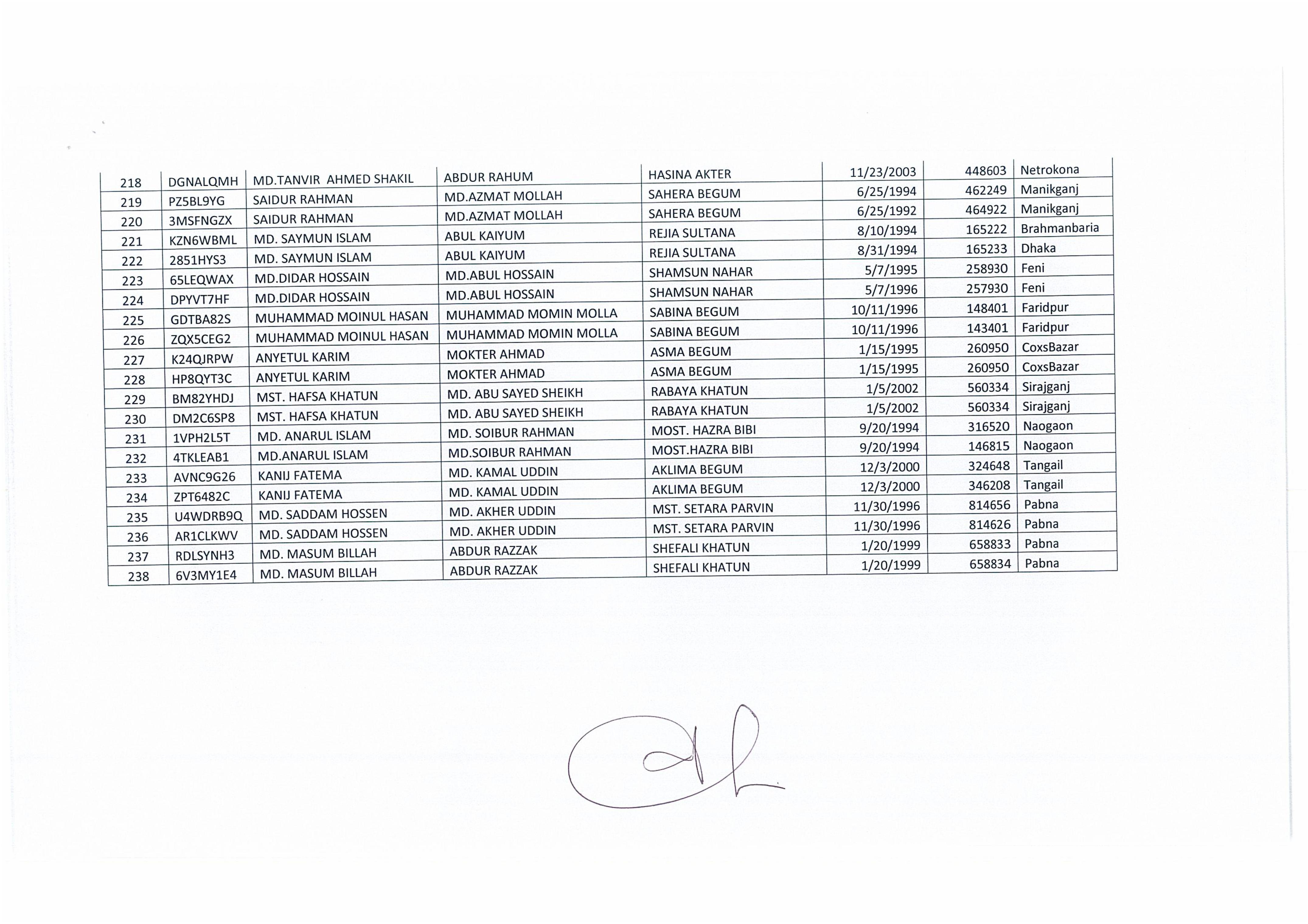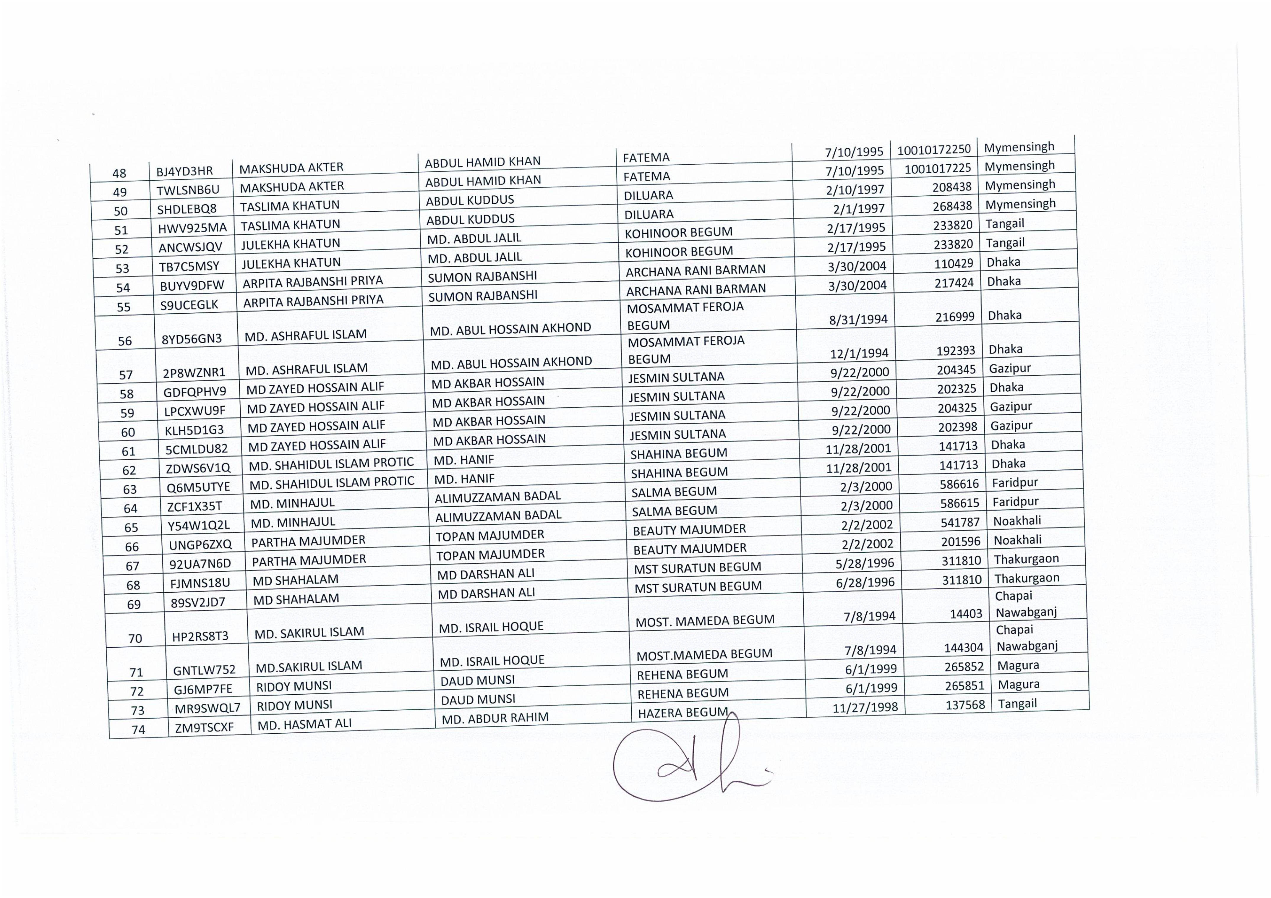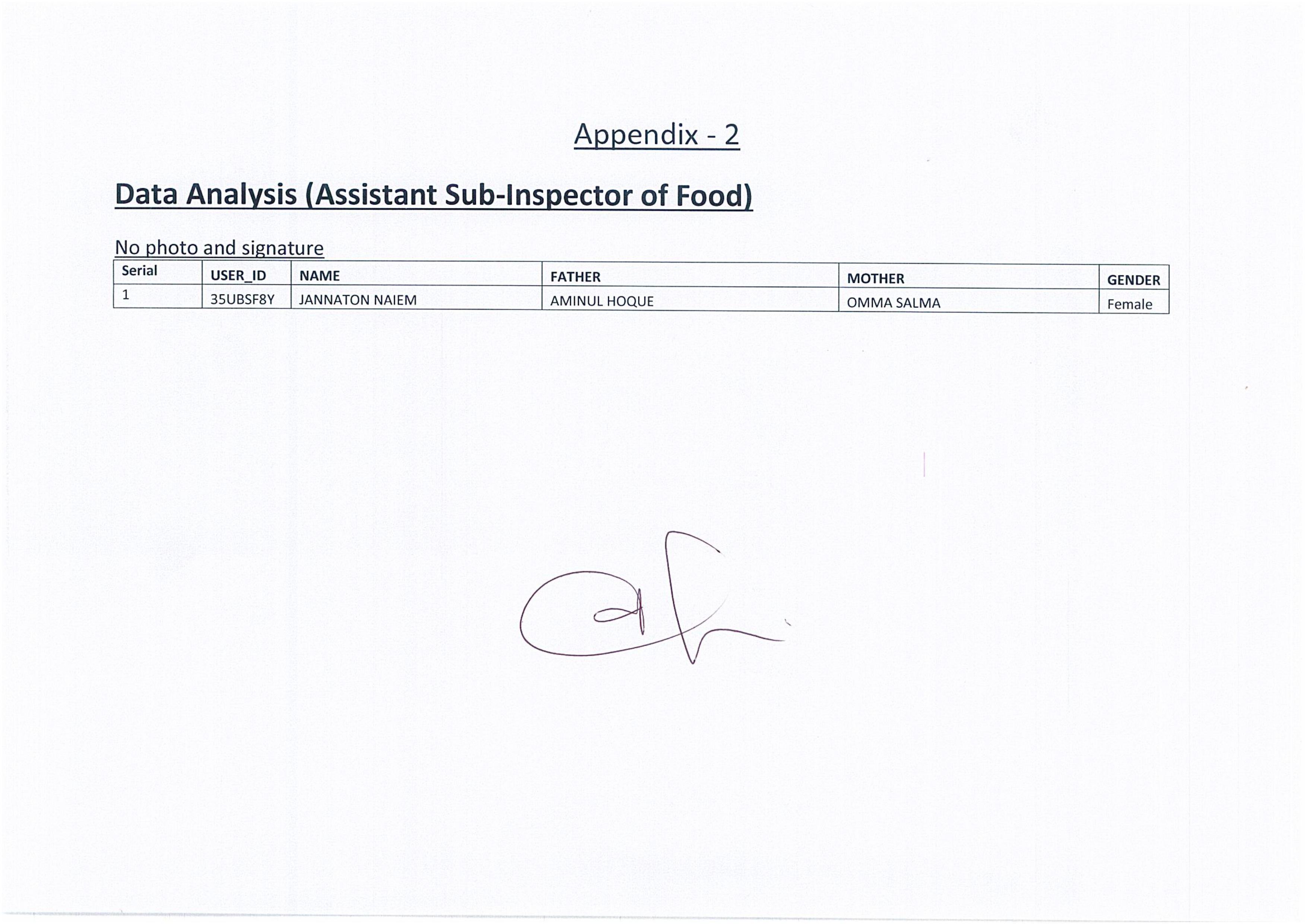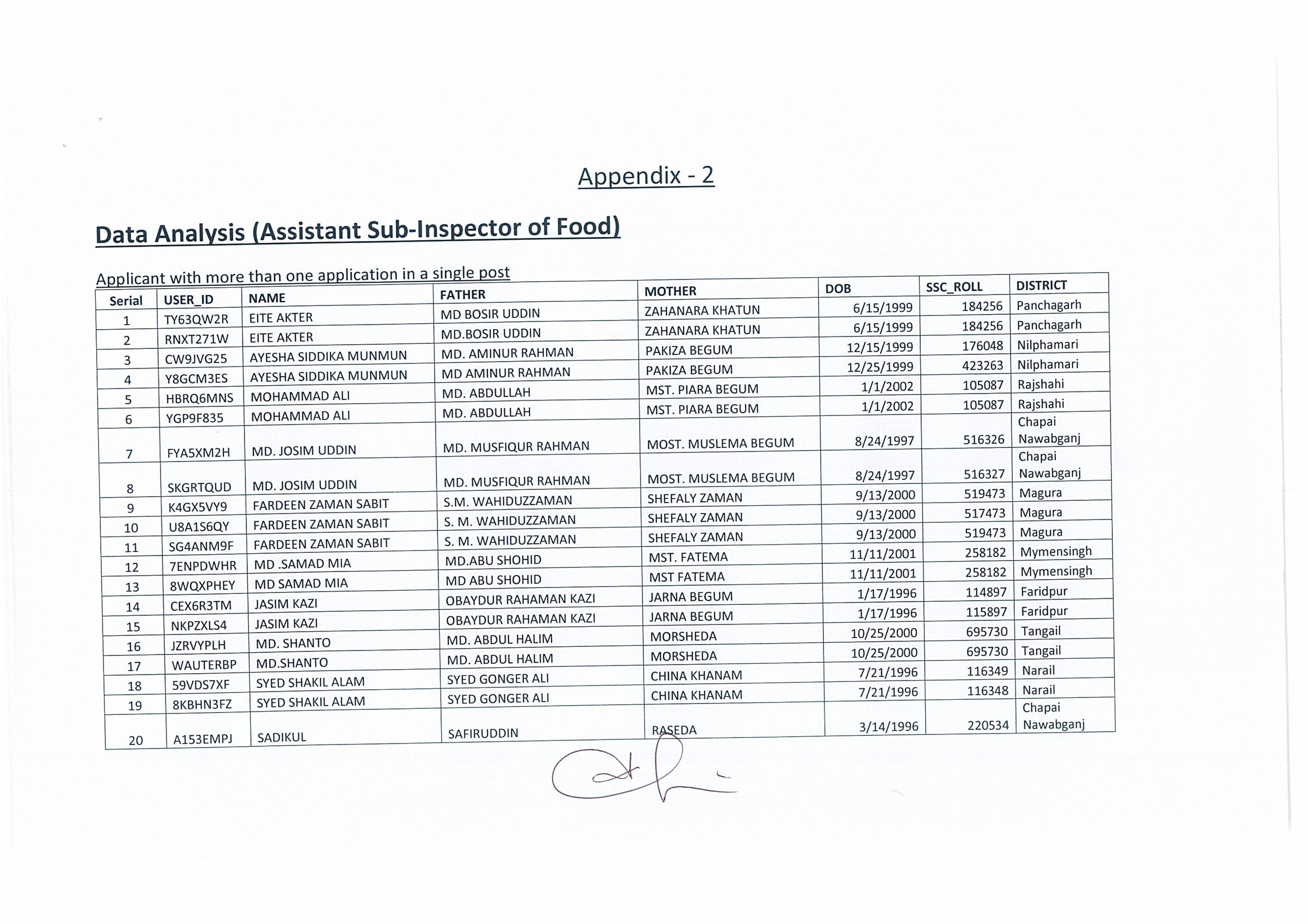 খাদ্য অধিদপ্তরের সহকারী উপখাদ্য পরিদর্শক (গ্রেড-১৫) পদে নিয়োগ পরীক্ষায় প্রার্থীতা বাতিলকরণ