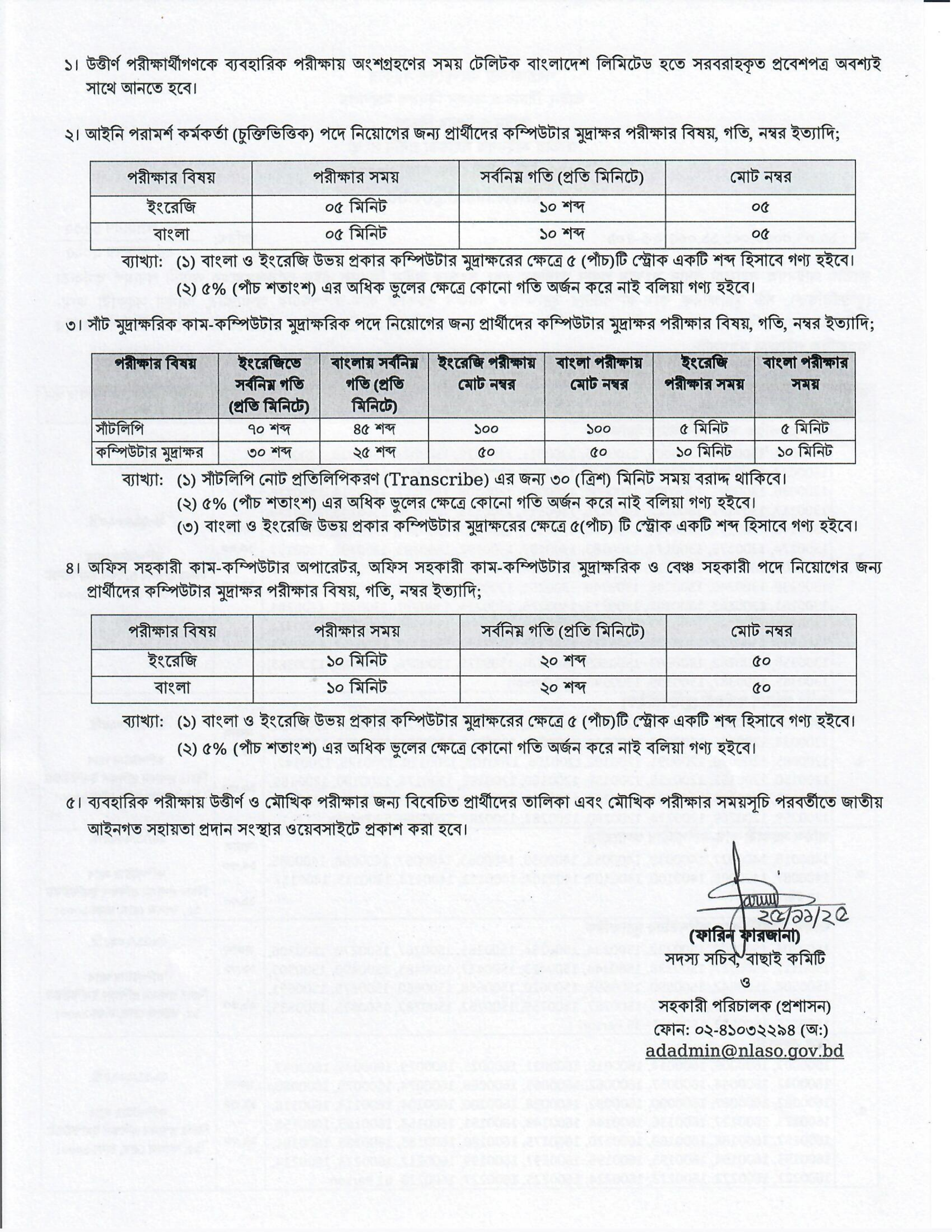 ব্যবহারিক পরীক্ষায় উত্তীর্ণ এবং মৌখিক পরীক্ষার জন্য বিবেচিত প্রার্থীদের তালিকা ও মৌখিক পরীক্ষার সময়সূচি পরবর্তীতে জাতীয় আইনগত সহায়তা প্রদান সংস্থার ওয়েবসাইটে প্রকাশ করা হবে।