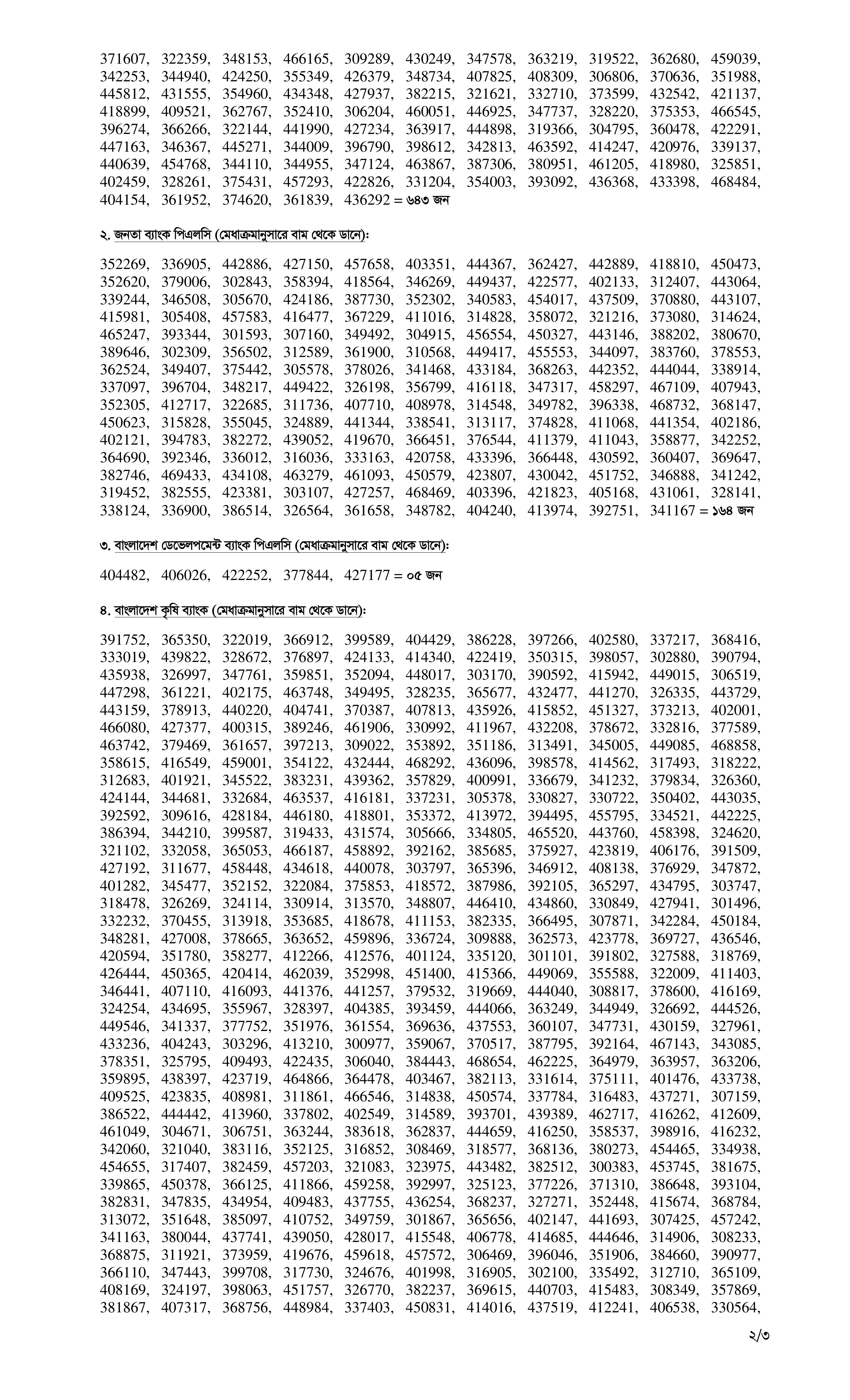 মেধা, কোটা ও প্রাপ্যতার ভিত্তিতে তাদের পছন্দক্রম অনুযায়ী নিম্নলিখিত ব্যাংকসমূহে নির্বাচিত প্রার্থীরা হলেন: