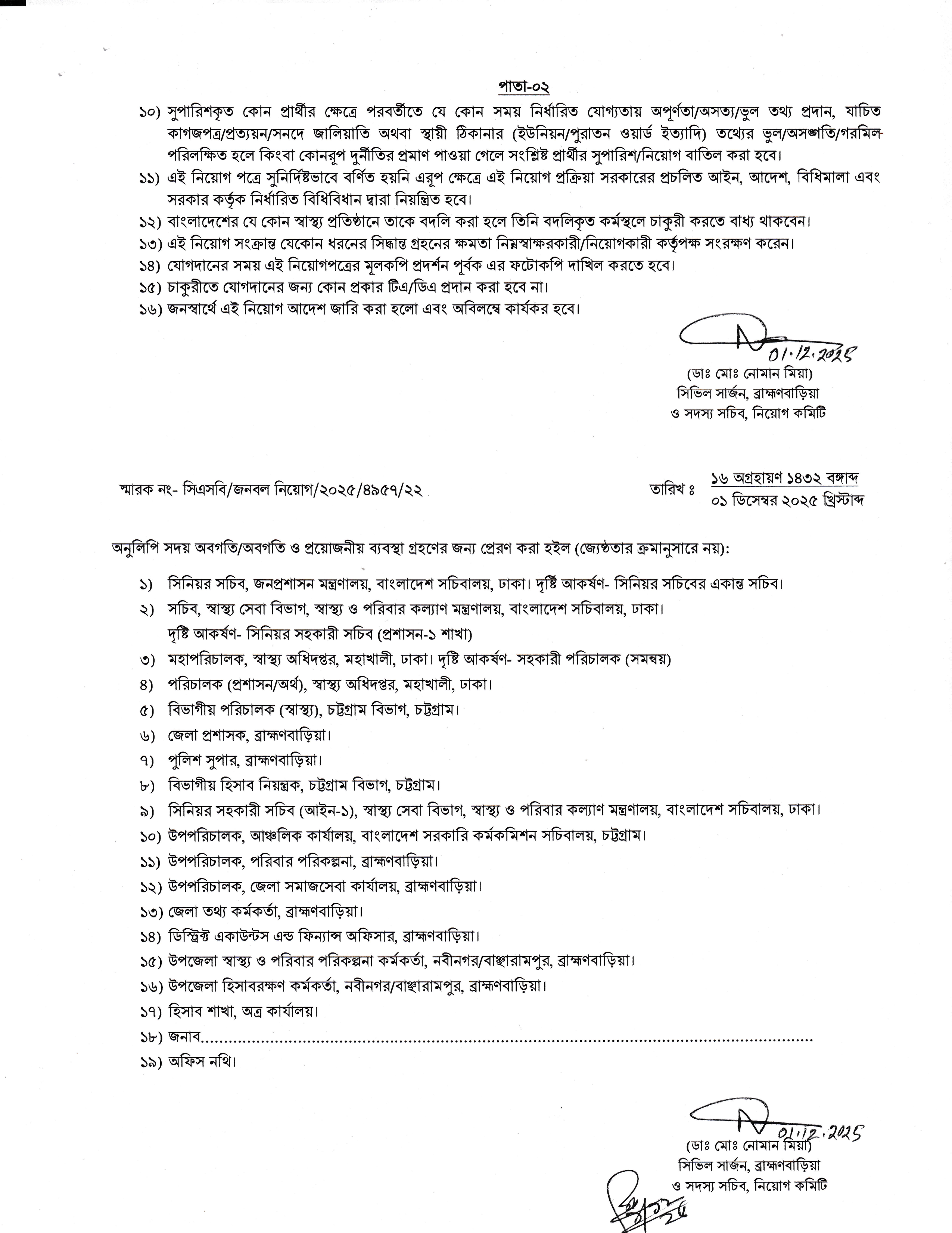 - নিয়োগপ্রাপ্ত ব্যক্তিদের ১৭/১২/২০২৫ তারিখে স্ব স্ব কর্মস্থলে যোগদান করতে হবে। ব্যর্থতায় নিয়োগপত্র বাতিল বলে গণ্য হবে।