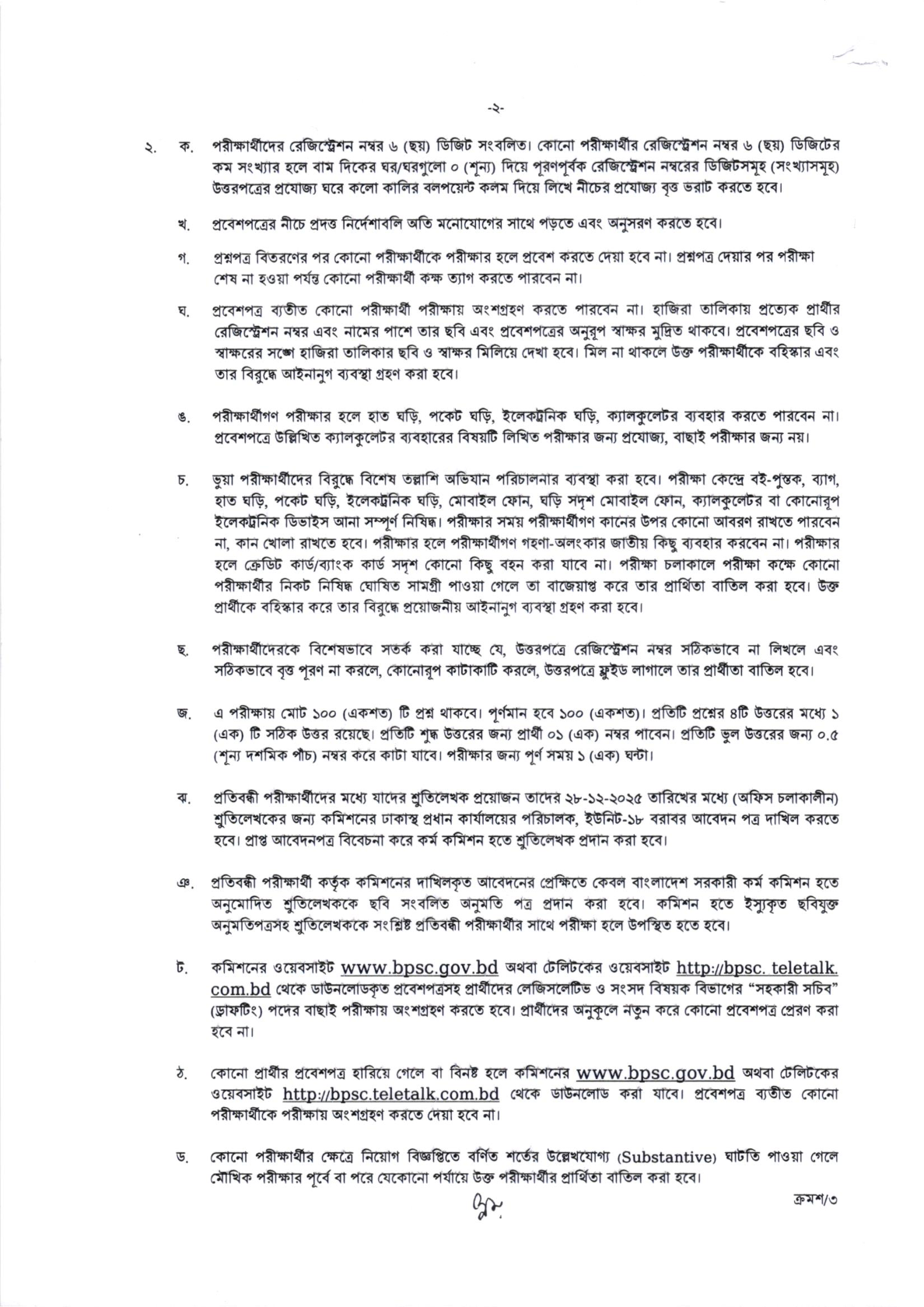 আইন, বিচার ও সংসদ বিষয়ক মন্ত্রণালয়ের নিয়ন্ত্রণাধীন লেজিসলেটিভ ও সংসদ বিষয়ক বিভাগের সহকারী সচিব (ড্রাফটিং) (৯ম গ্রেড) পদের বাছাই পরীক্ষা (MCQ Type) এর কেন্দ্র, সময়সূচি, আসন ব্যবস্থা ও নির্দেশাবলি।