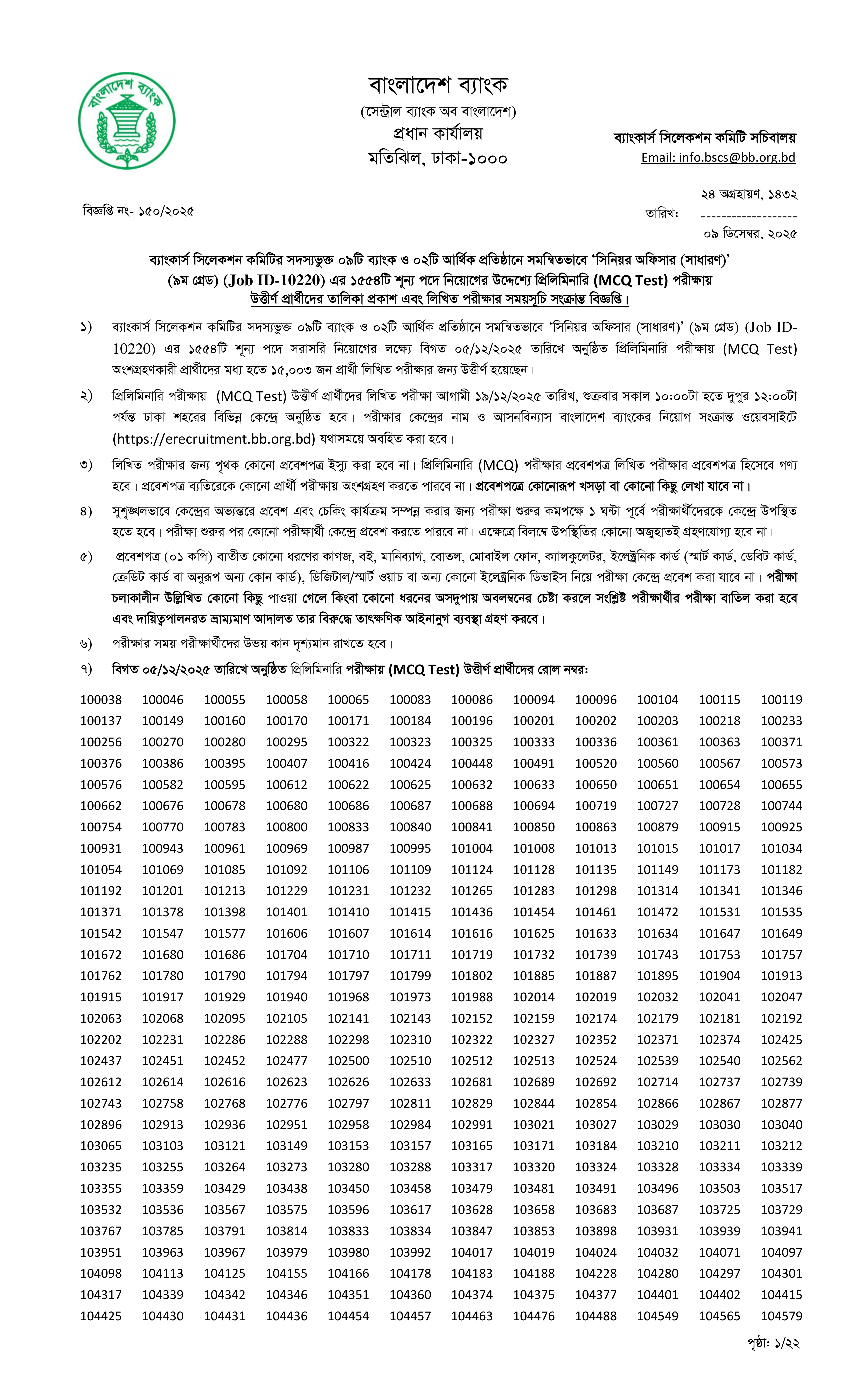 লিখিত পরীক্ষা আগামী ১৯/১২/২০২৫ তারিখ, শুক্রবার সকাল ১০:০০টা হতে দুপুর ১২:০০টা পর্যন্ত ঢাকা শহরের বিভিন্ন কেন্দ্রে অনুষ্ঠিত হবে।