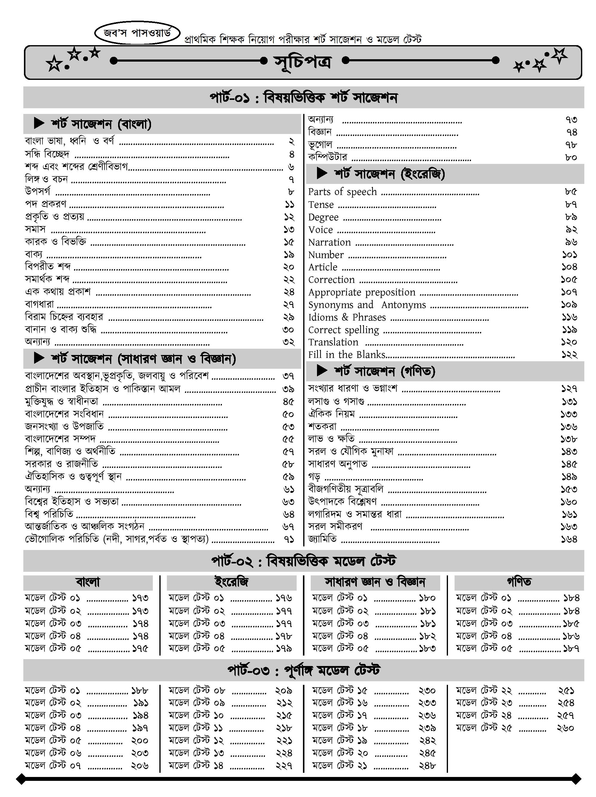 শেষ সময়ের প্রস্তুতি নিতে জব'স পাসওয়ার্ডের প্রাথমিক শিক্ষক নিয়োগ পরীক্ষার শর্ট সাজেশন ও মডেল টেস্ট বইটি পড়ুন। আপডেট বই দ্রুত লাইব্রেরিতে পাবেন।
