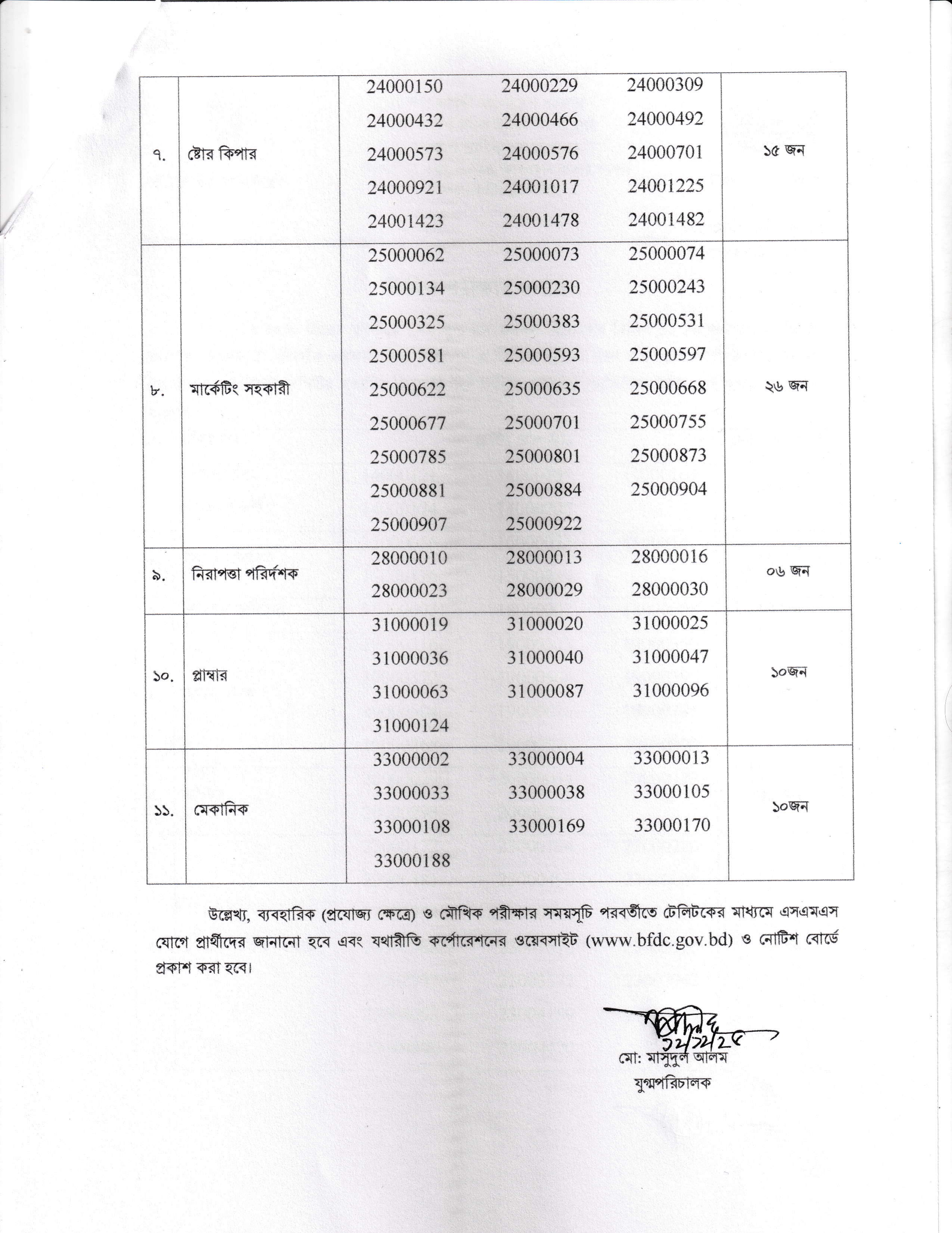 উল্লেখ্য, ব্যবহারিক (প্রযোজ্য ক্ষেত্রে) ও মৌখিক পরীক্ষার সময়সূচি পরবর্তীতে টেলিটকের মাধ্যমে এসএমএস যোগে প্রার্থীদের জানানো হবে। এছাড়াও, কর্পোরেশনের ওয়েবসাইট (bfdc.gov.bd) এবং নোটিশ বোর্ডে বিস্তারিত তথ্য প্রকাশ করা হবে।