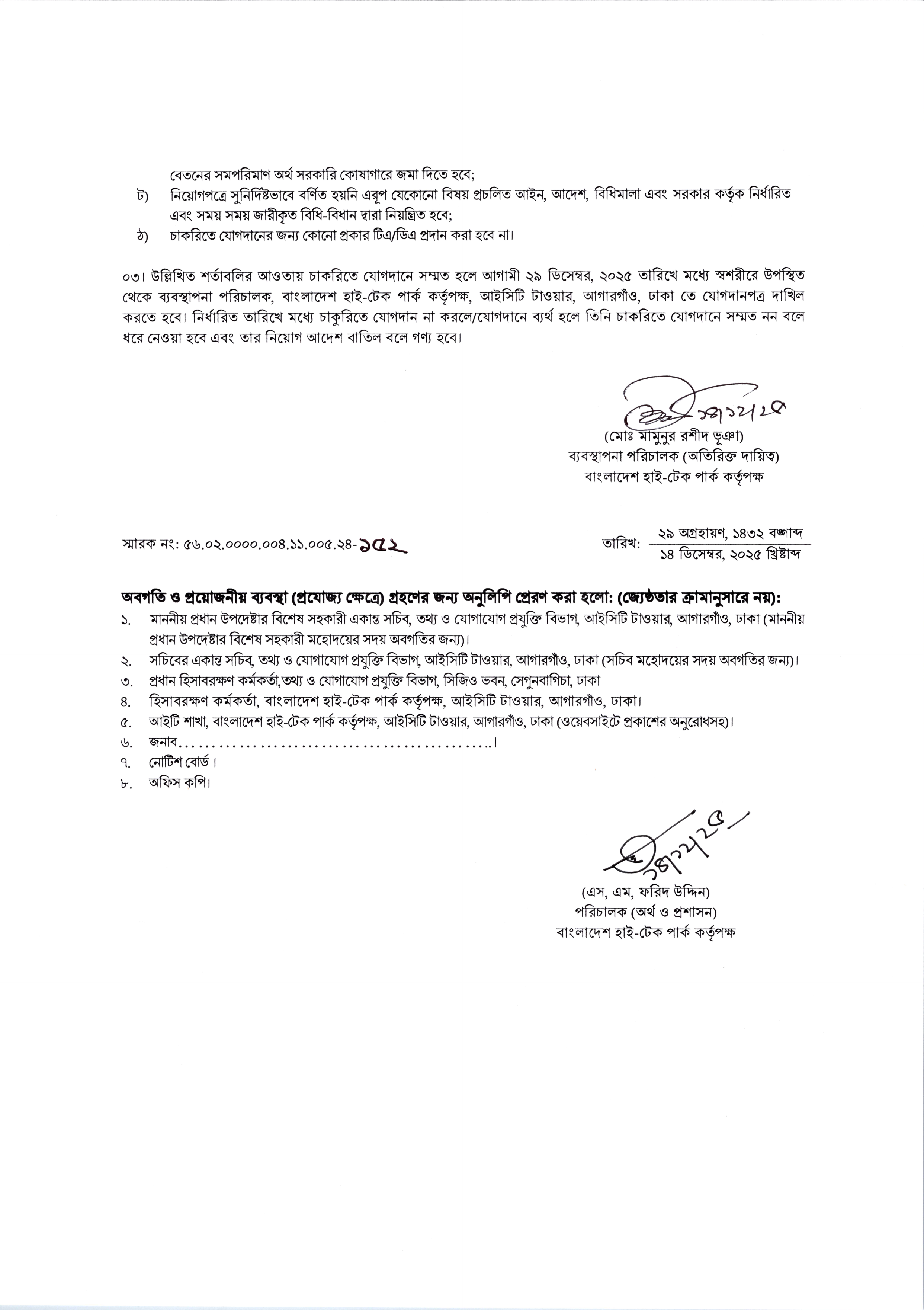 যোগদানের স্থান: ব্যবস্থাপনা পরিচালক, বাংলাদেশ হাই-টেক পার্ক কর্তৃপক্ষ, আইসিটি টাওয়ার, আগারগাঁও, ঢাকা।