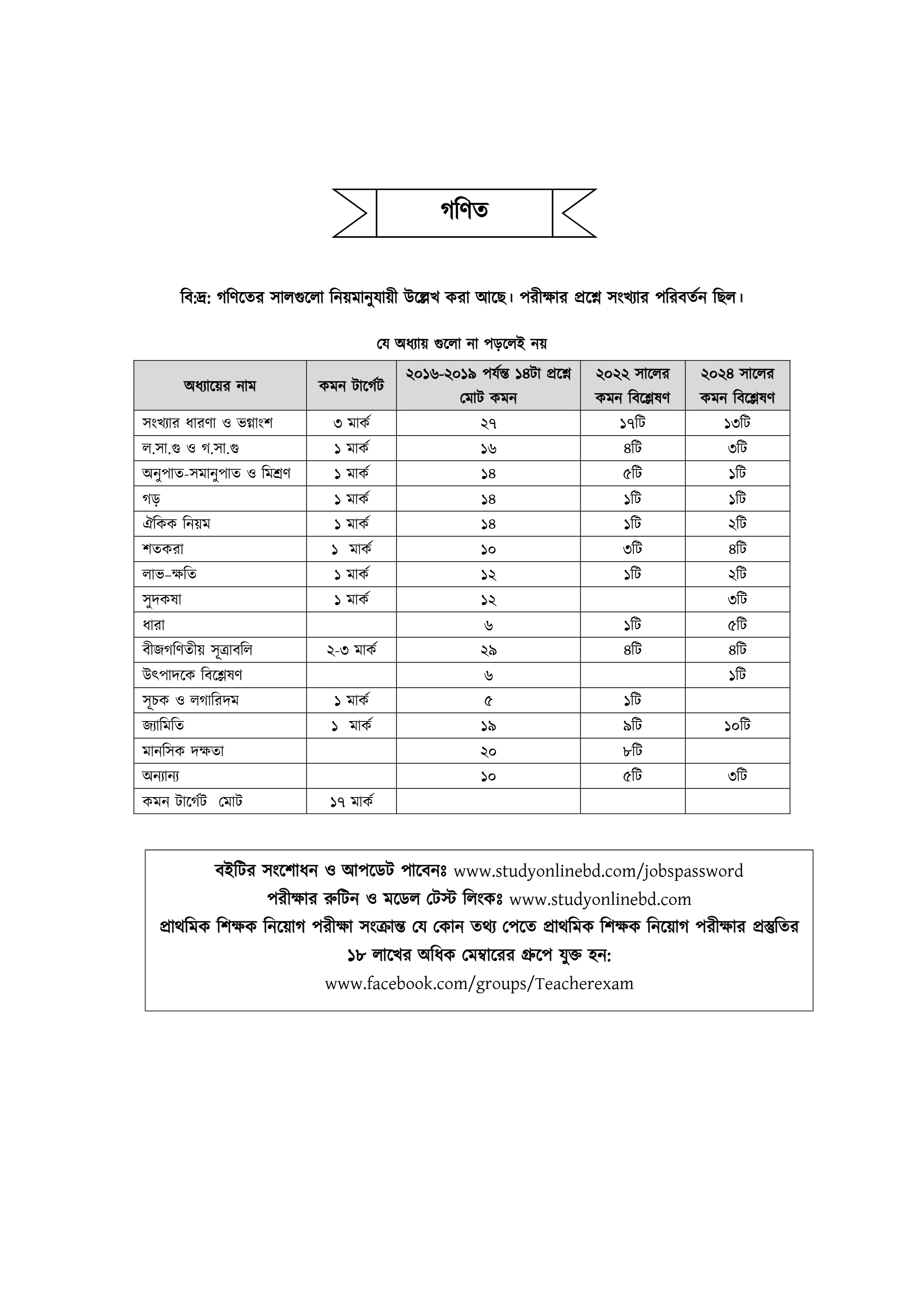 “জব’স পাসওয়ার্ড” এর প্রাথমিক শিক্ষক নিয়োগ পরীক্ষার শর্ট সাজেশনের গণিত অংশ পরলেই আপনি প্রতিটা পরীক্ষায় সর্বনিম্ন ৭০- ৮০% মার্ক কমন পাবেন।