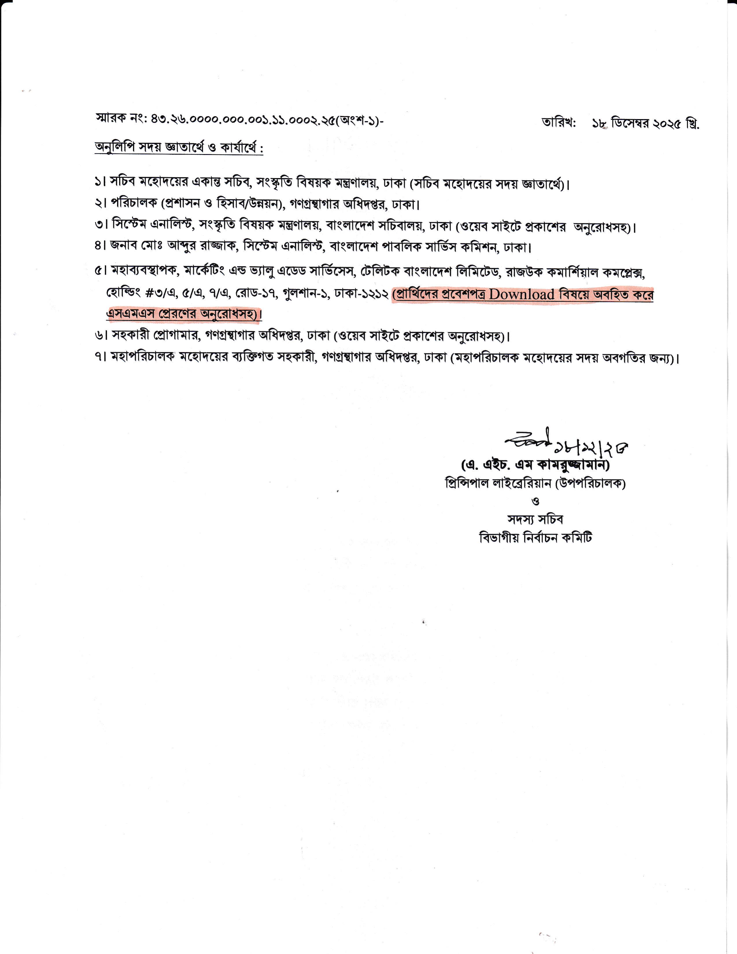 বিস্তারিত নিচের বিজ্ঞপ্তিতে দেখুনঃ