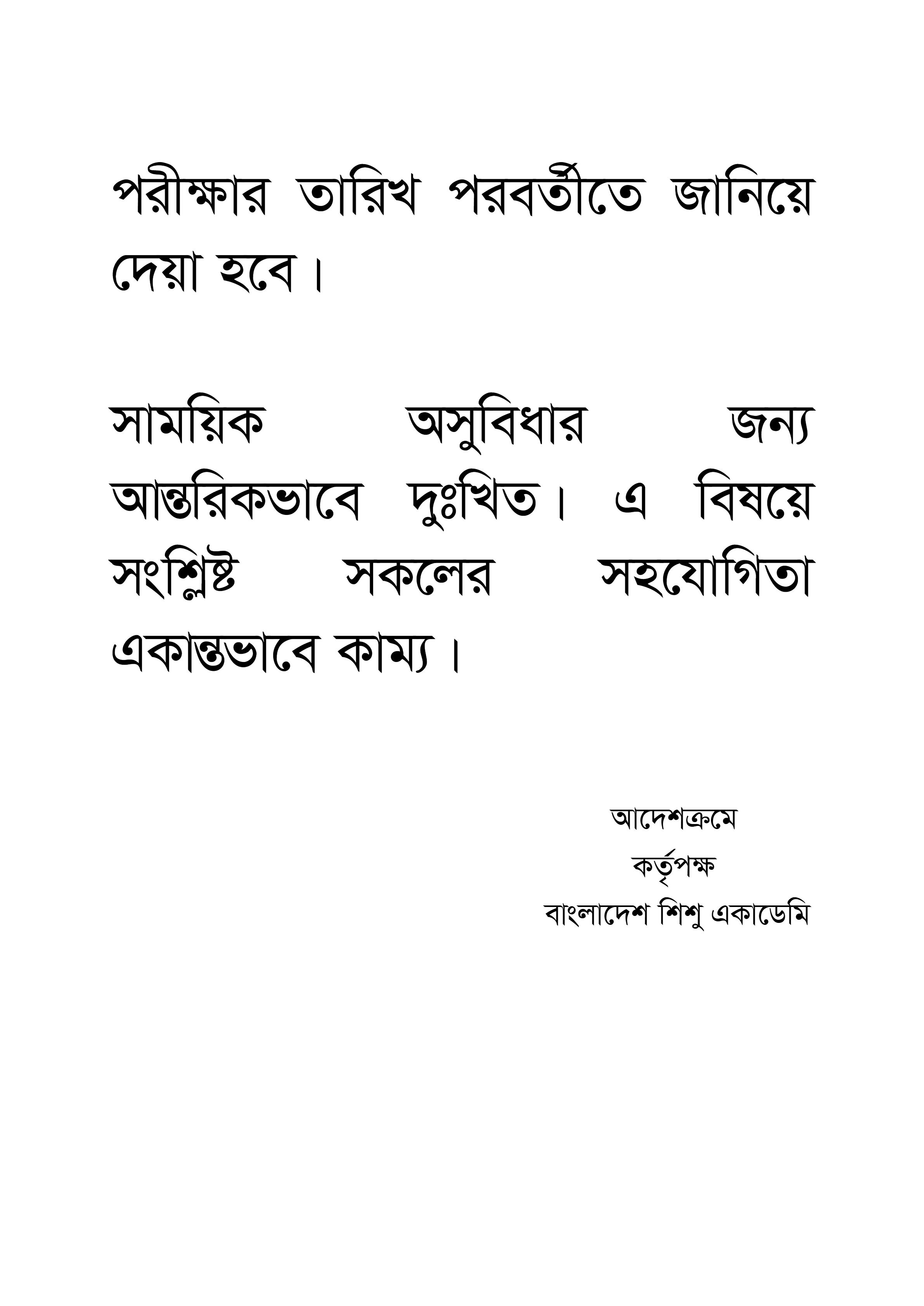 আদেশক্রমে,কর্তৃপক্ষ বাংলাদেশ শিশু একাডেমি