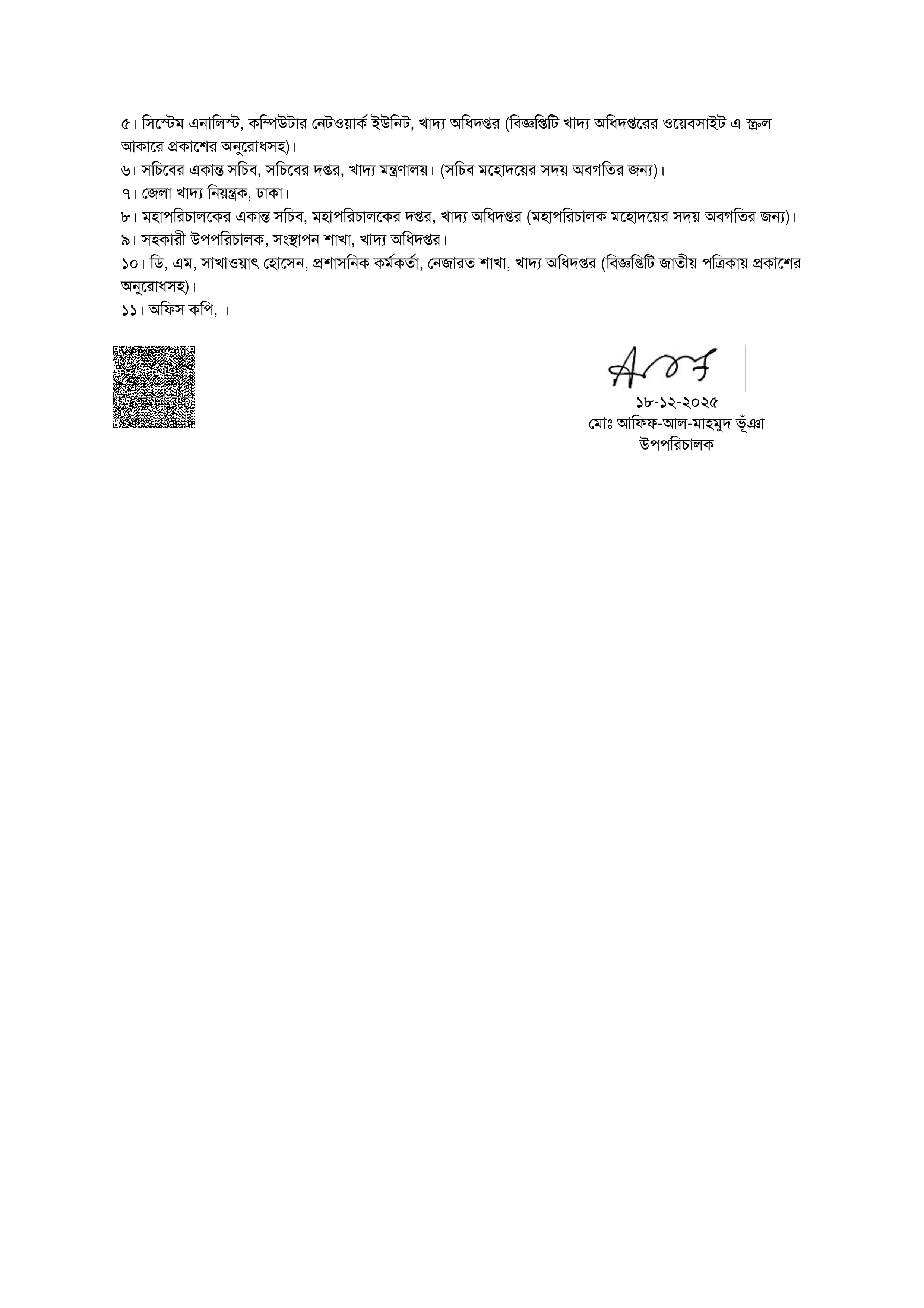 পরীক্ষার্থীরা আগামী ২৪ ডিসেম্বর ২০২৫ তারিখ সকাল ১০:০০ ঘটিকা থেকে খাদ্য অধিদপ্তরের নির্ধারিত ওয়েবসাইট থেকে তাদের প্রবেশপত্র ডাউনলোড করতে পারবেন। দ্রুত এবং সুষ্ঠুভাবে পরীক্ষা সম্পন্ন করার লক্ষ্যে যথাযথ প্রস্তুতি গ্রহণের নির্দেশ দেওয়া হয়েছে।