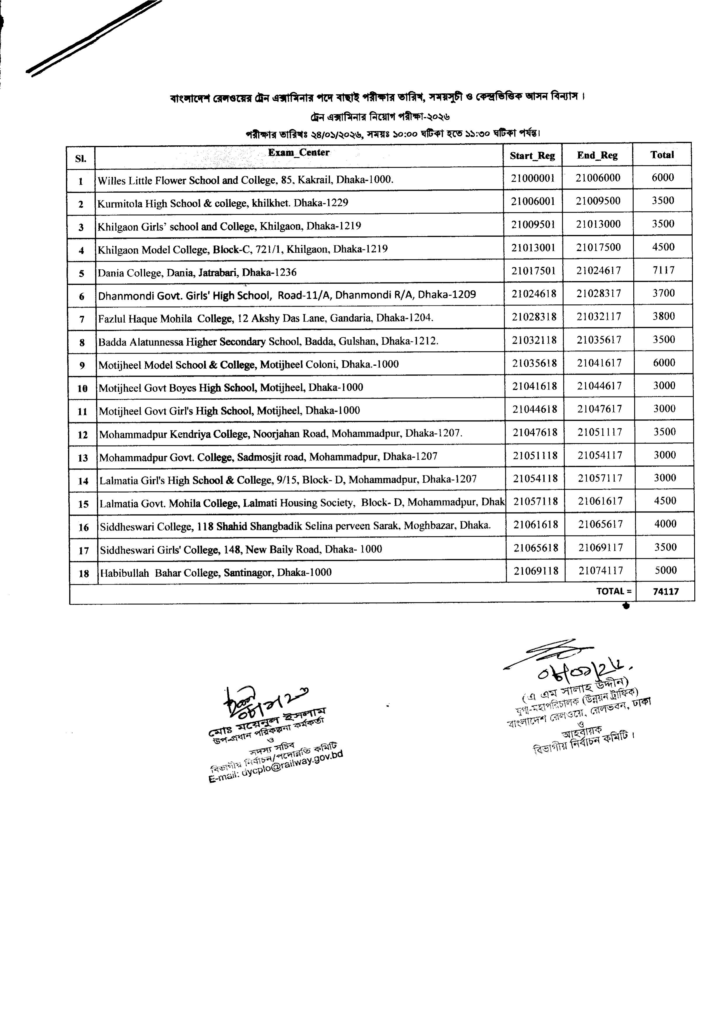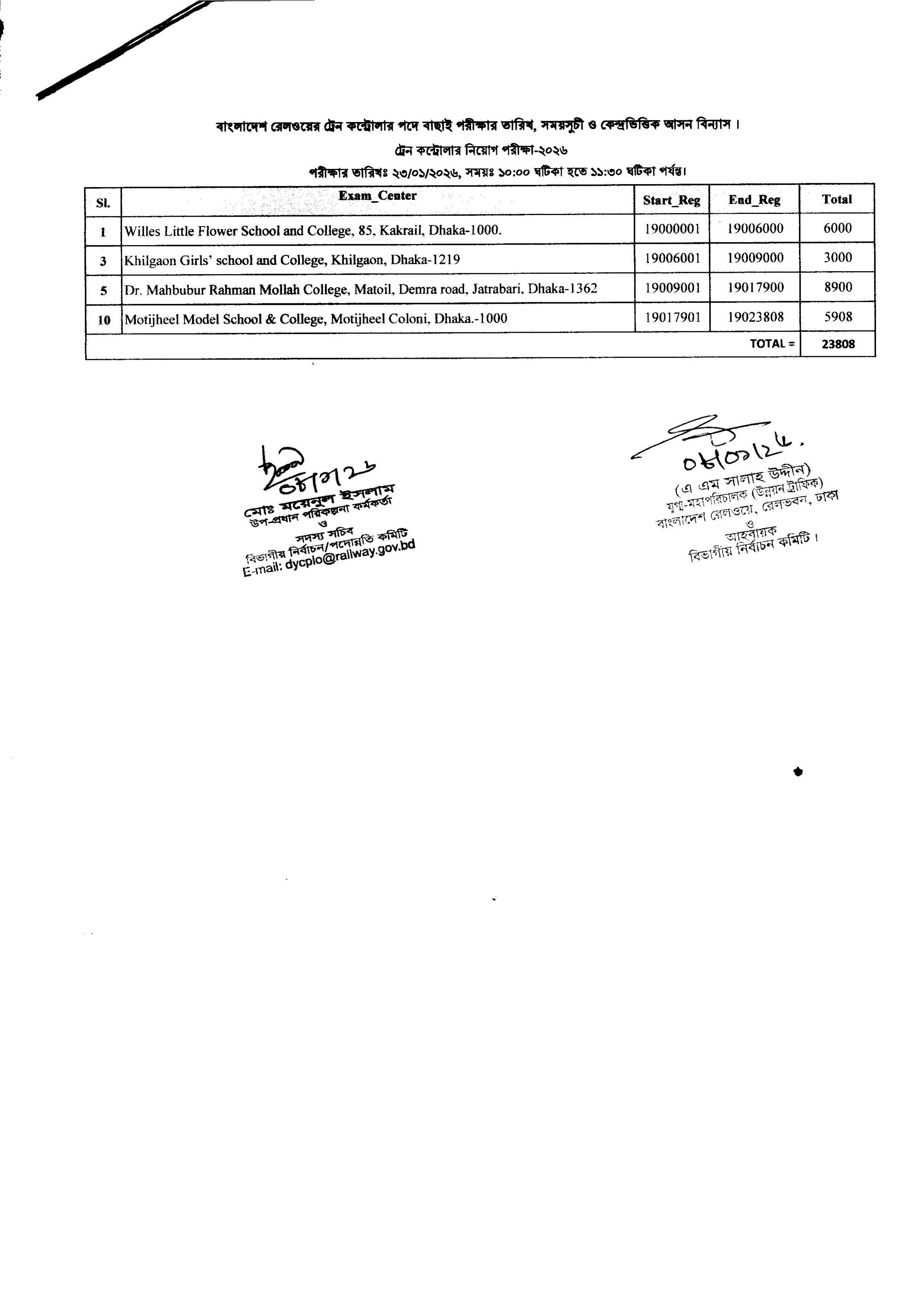 ১. ট্রেন কন্ট্রোলার: ২৩ জানুয়ারি ২০২৬ (সকাল ১০:০০ টা থেকে ১১:৩০ টা পর্যন্ত)