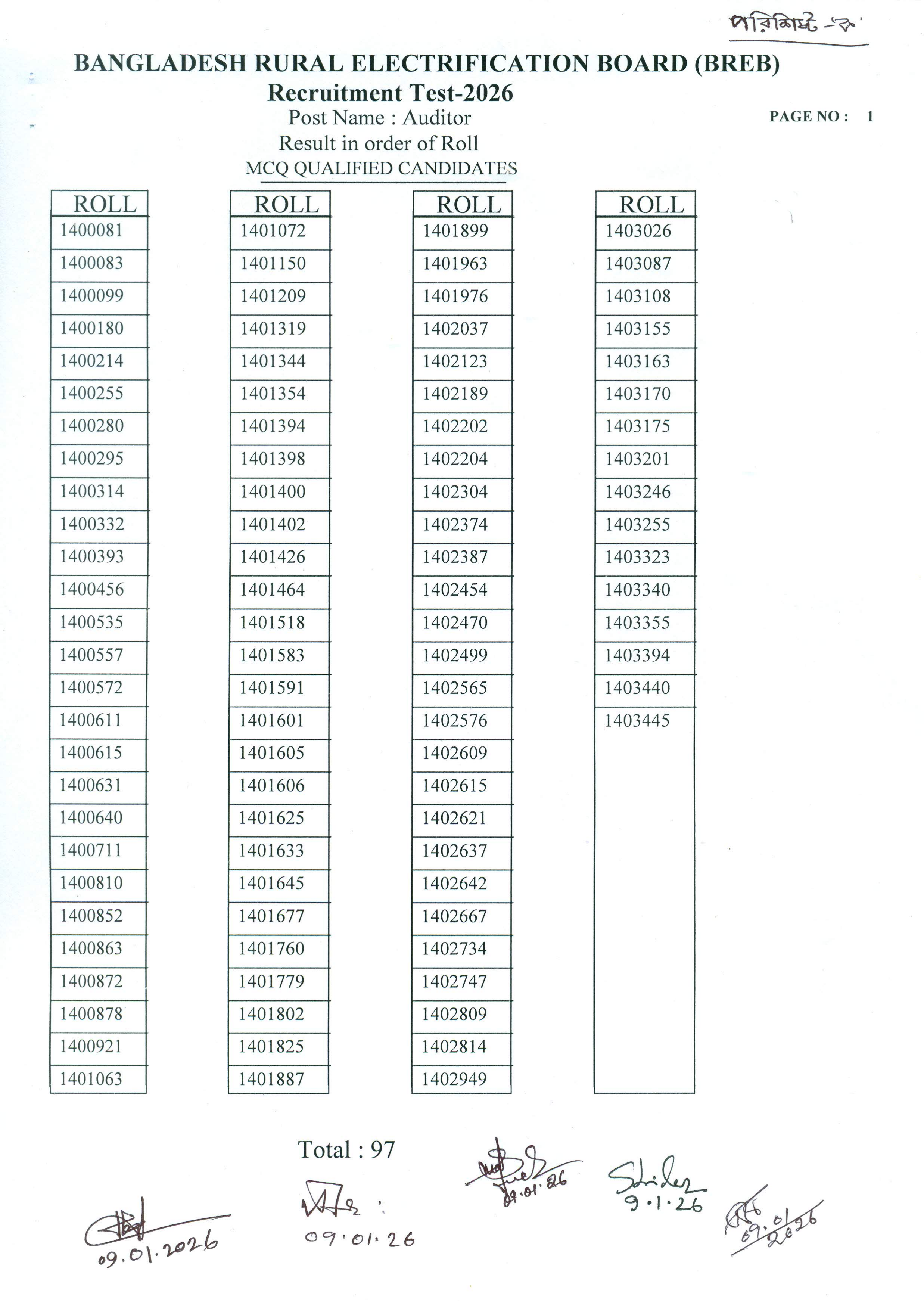 নির্বাচিত প্রার্থীর সংখ্যা: ৯৭ জন