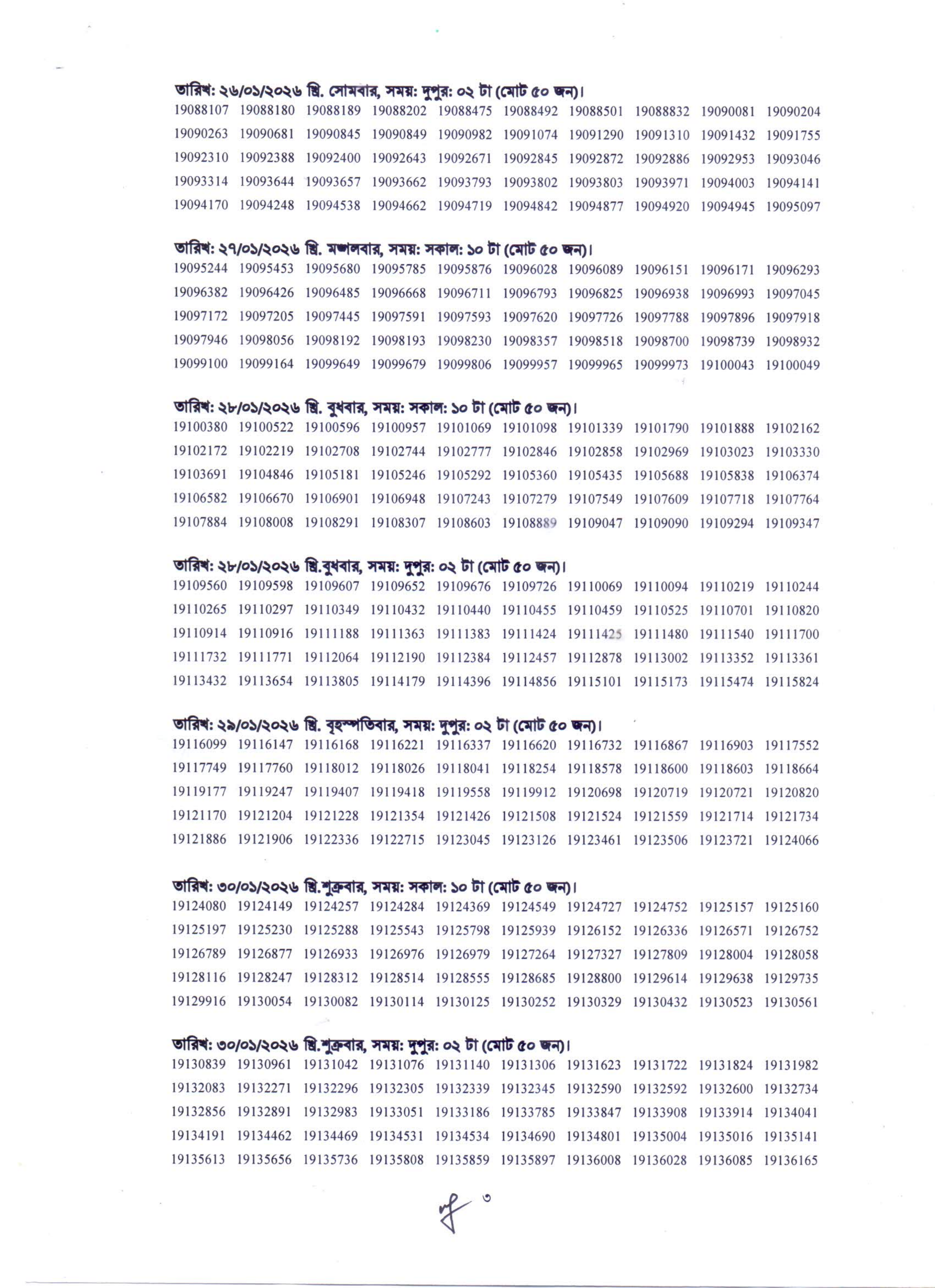 পরীক্ষার তারিখ: ১৯ জানুয়ারি ২০২৬ থেকে ০১ ফেব্রুয়ারি ২০২৬ পর্যন্ত বিভিন্ন তারিখে অনুষ্ঠিত হবে।