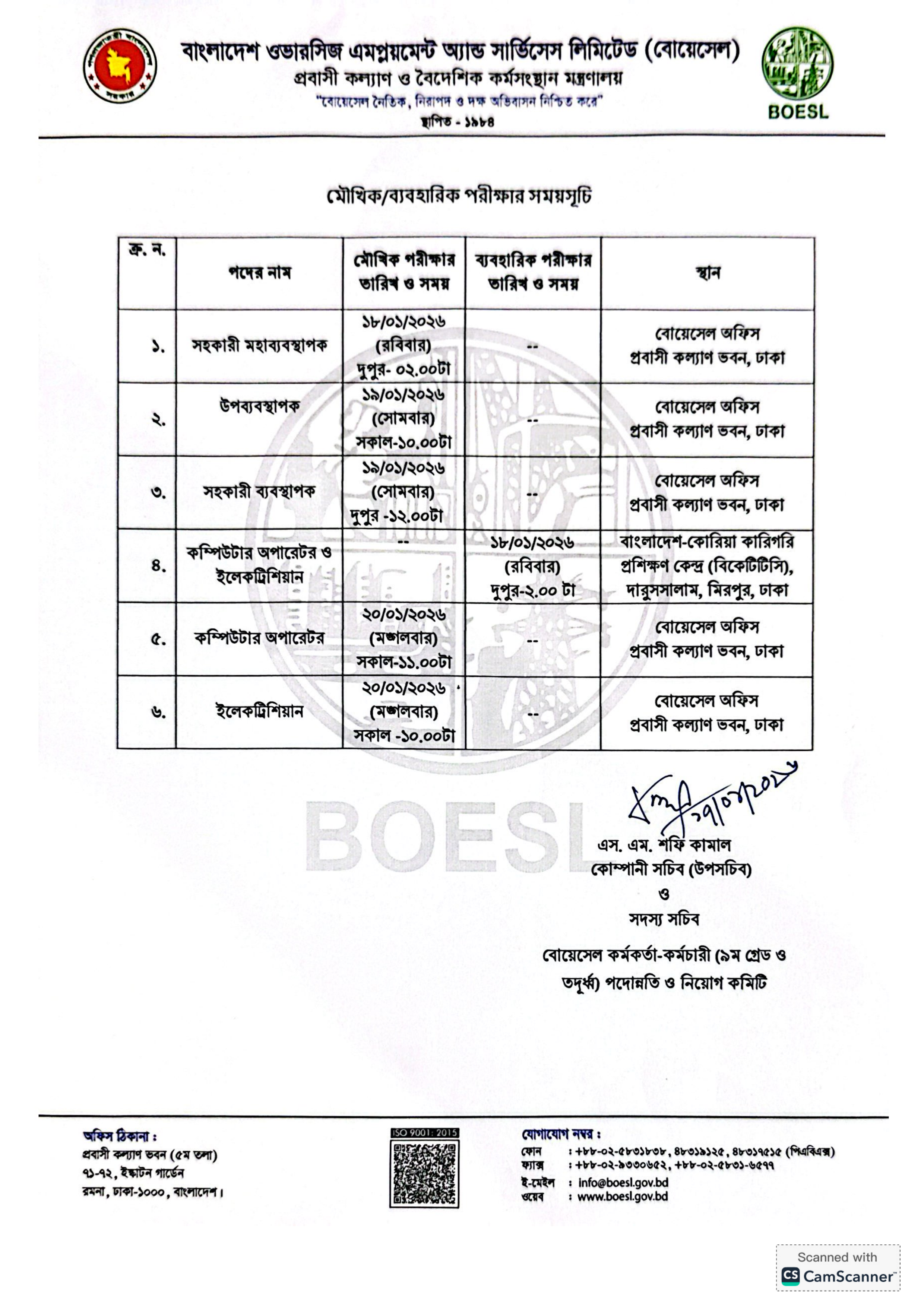 সহকারী ব্যবস্থাপক: মৌখিক পরীক্ষা ১৯ জানুয়ারি ২০২৬ তারিখ সকাল ১০:০০ টায় অনুষ্ঠিত হবে।