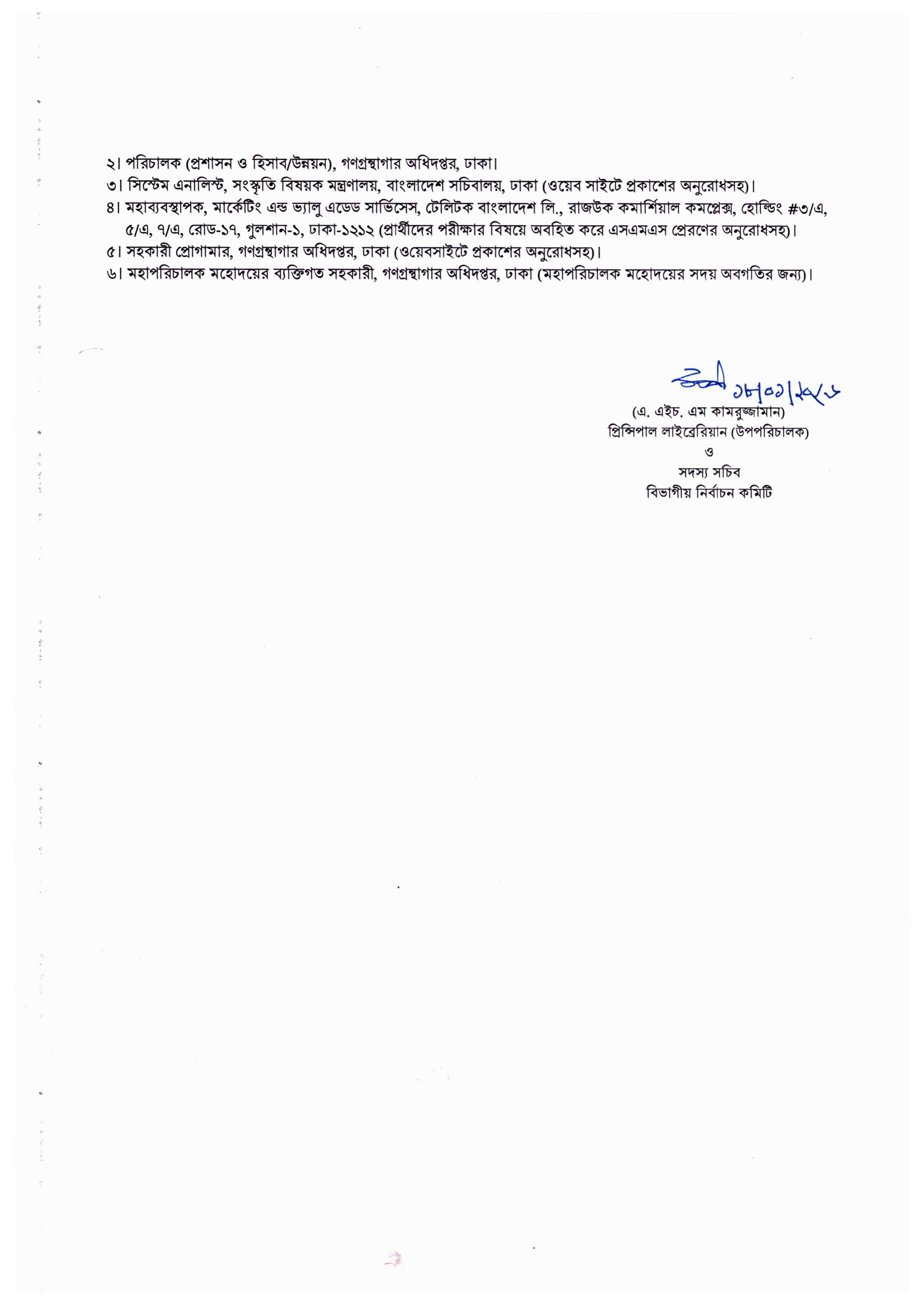 সংস্কৃতি বিষয়ক মন্ত্রণালয়ের আওতাধীন গণগ্রন্থাগার অধিদপ্তরের ১৩-১৬ গ্রেডের (ড্রাইভার ব্যতীত) বিভিন্ন পদের লিখিত পরীক্ষার সময়সূচি প্রকাশ করা হয়েছে। প্রাথমিক বাছাই (MCQ) পরীক্ষায় উত্তীর্ণ ১০৯৮ জন প্রার্থী এই লিখিত পরীক্ষায় অংশগ্রহণ করবেন।
