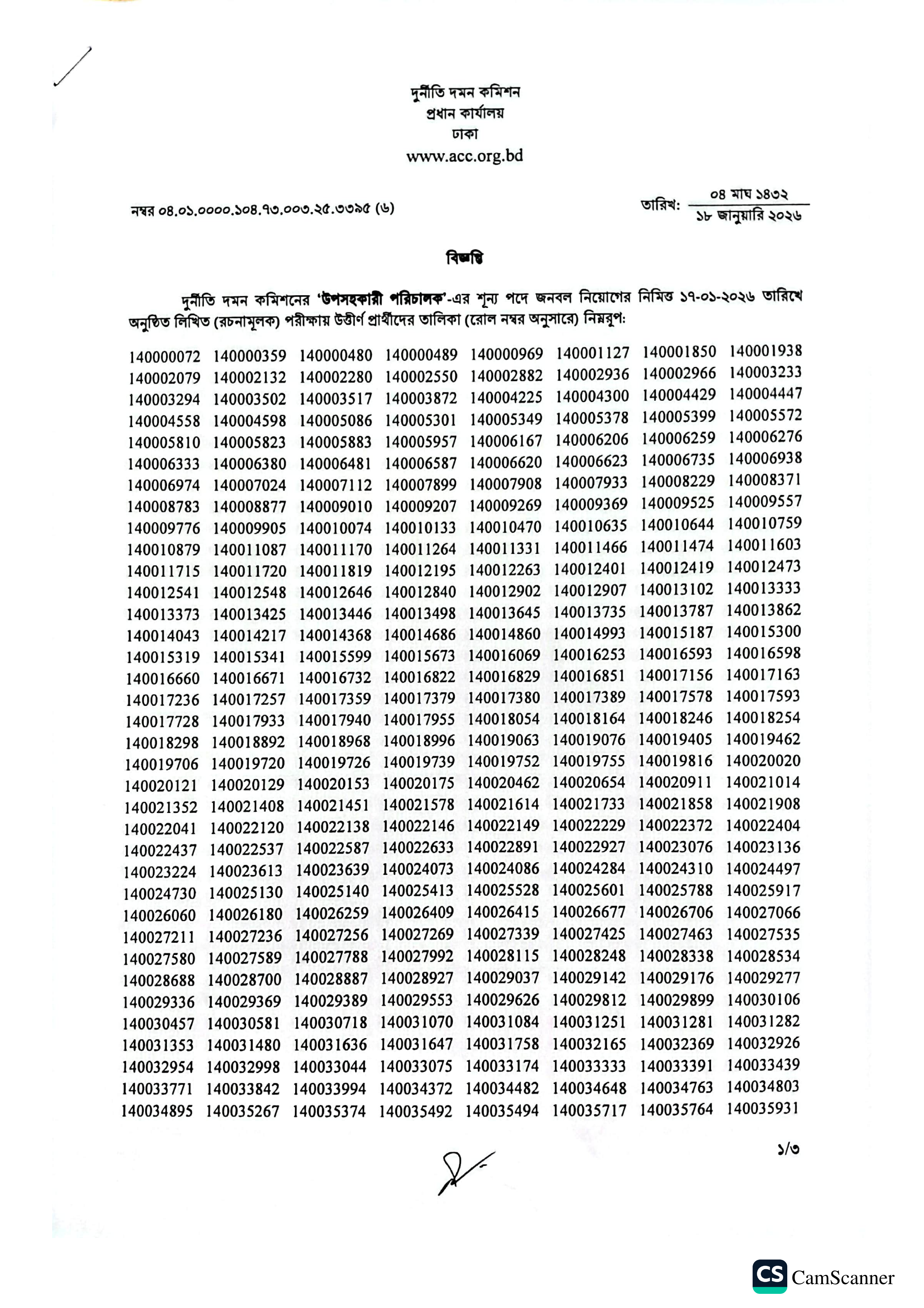 দুর্নীতি দমন কমিশনের (দুদক) 'উপসহকারী পরিচালক' পদের লিখিত (রচনামূলক) পরীক্ষার ফলাফল প্রকাশিত হয়েছে। গত ১৭ জানুয়ারি ২০২৬ তারিখে অনুষ্ঠিত এই পরীক্ষায় মোট ৭৮০ জন প্রার্থী সাময়িকভাবে উত্তীর্ণ হয়েছেন।