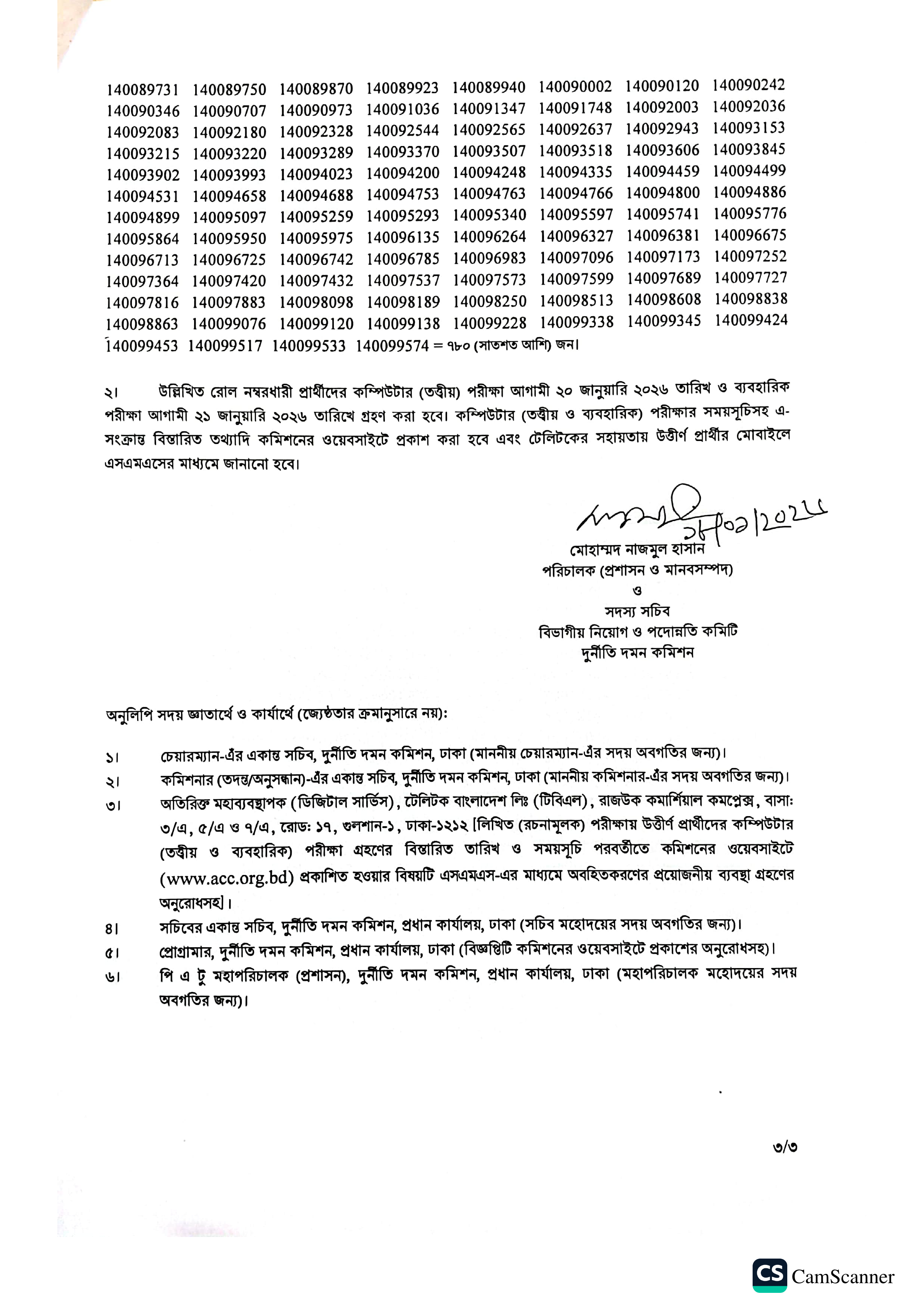 ১. কম্পিউটার (তত্ত্বীয়) পরীক্ষা: ২০ জানুয়ারি ২০২৬