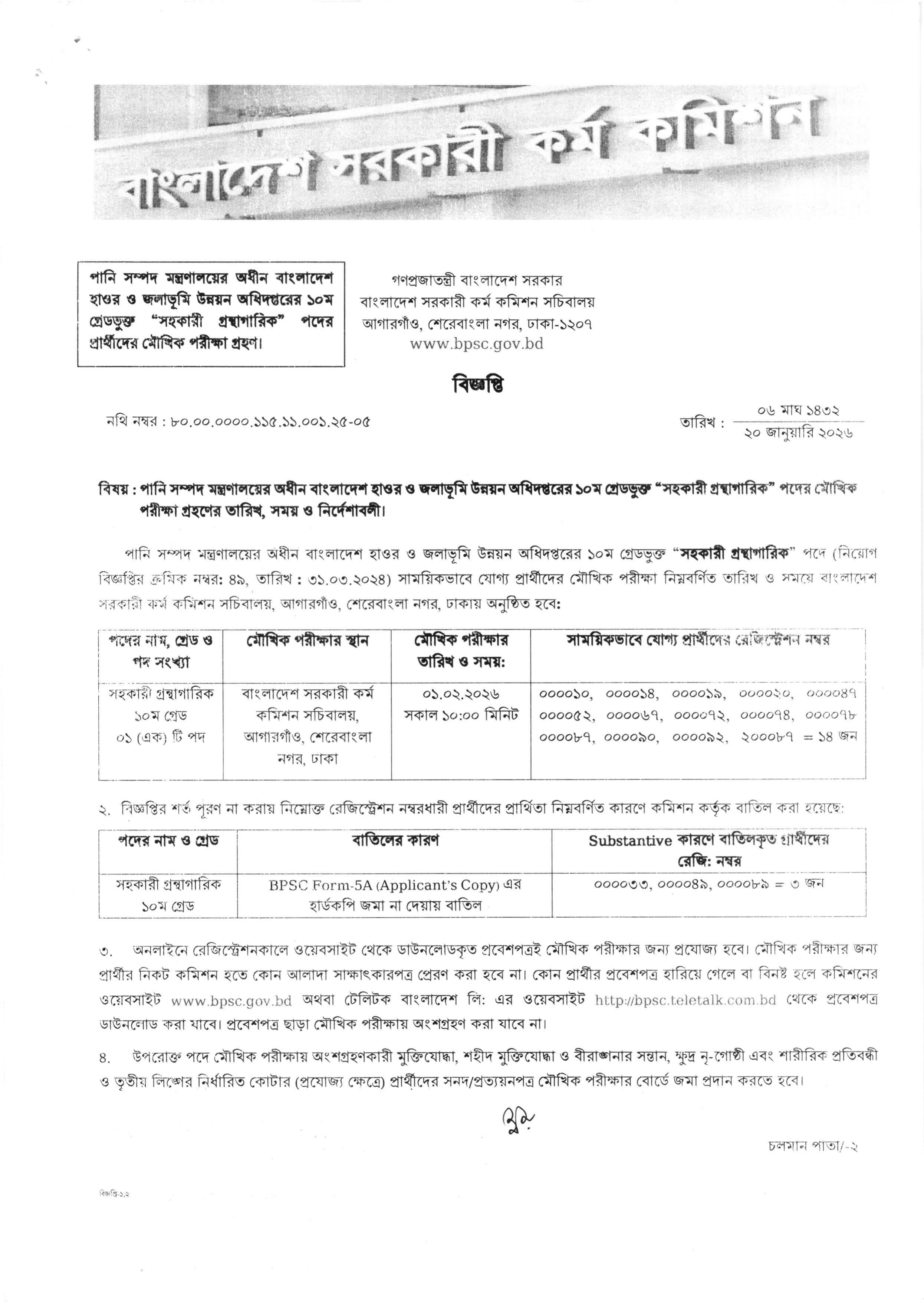 মৌখিক পরীক্ষার তারিখ ও সময়: ০১ ফেব্রুয়ারি ২০২৬, সকাল ১০:০০ ঘটিকা।