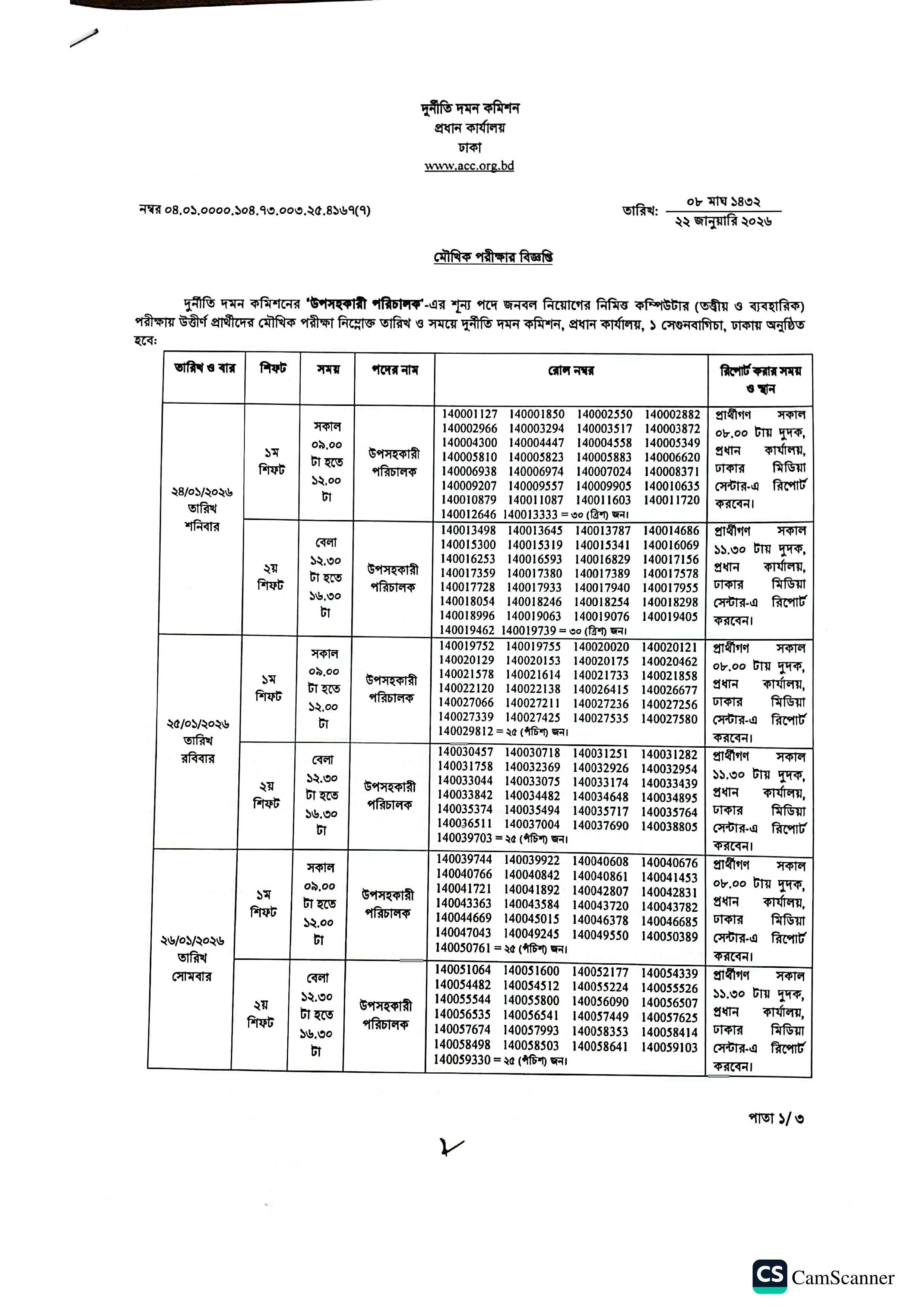 দুর্নীতি দমন কমিশন (দুদক) কর্তৃক “উপসহকারী পরিচালক” পদের মৌখিক পরীক্ষার সময়সূচি ঘোষণা করা হয়েছে। কম্পিউটার (তত্ত্বীয় ও ব্যবহারিক) পরীক্ষায় উত্তীর্ণ প্রার্থীরা এই মৌখিক পরীক্ষায় অংশগ্রহণ করবেন।
