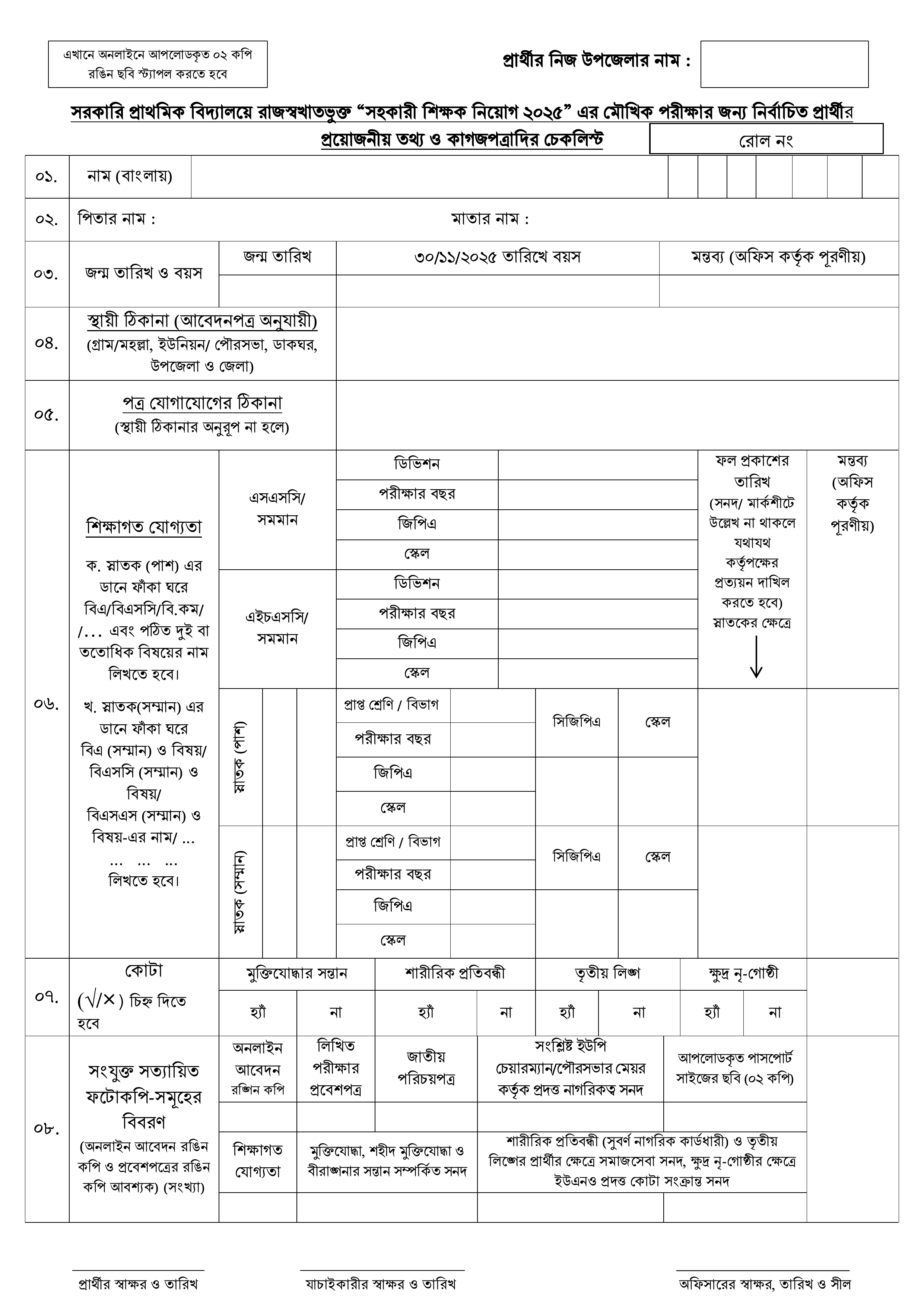 বয়স সংক্রান্ত তথ্য: প্রার্থীদের বয়স ৩০/১১/২০২৫ তারিখ অনুযায়ী গণনা করা হবে।